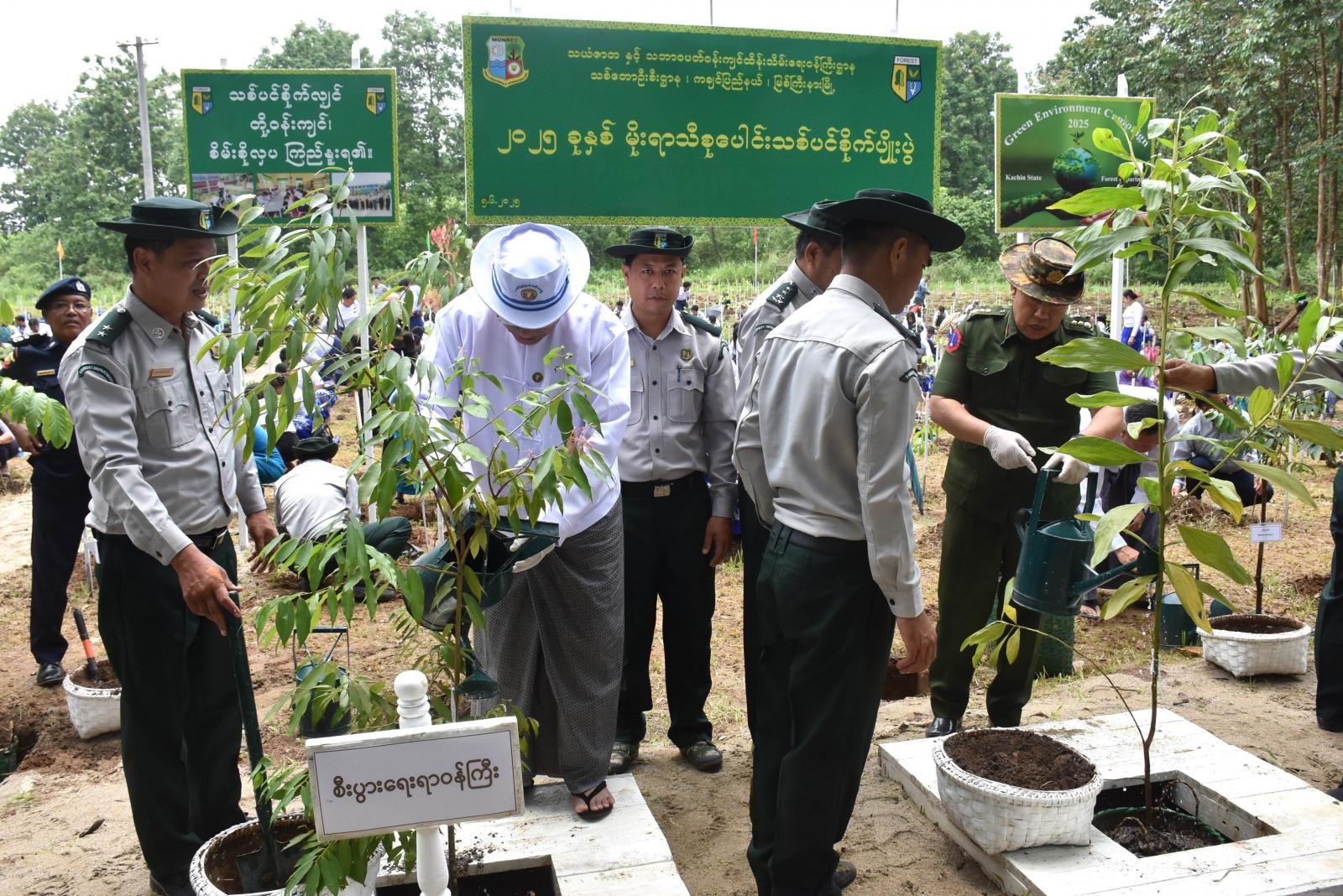 ရှေးဦးစွာ ကချင်ပြည်နယ်အစိုးရအဖွဲ့ဝင် လုံခြုံရေးနှင့်နယ်စပ်ရေးရာဝန်ကြီး၊ ပြည်နယ်ဝန်ကြီးများနှင့် ပြည်နယ်ဥပဒေချုပ်တို့က မိုးရာသီသစ်ပင်စိုက်ပျိုးပွဲတော်တွင် စိုက်ပျိုးသွားမည့် ပျိုးပင်များအား နည်းပညာတက္ကသိုလ်မှ ဒုတိယပါမောက္ခချုပ် ဒေါက်တာမင်းမင်းဦးနှင့် ဌာနဆိုင်ရာ တာဝန်ရှိသူများထံ ဖြန့်ဝေပေးအပ်ပြီး ပြည်နယ်/ ခရိုင်/ မြို့နယ်အဆင့်ဌာနဆိုင်ရာများ၊ သစ်တော ဦးစီးဌာနမှ အရာထမ်း/ အမှုထမ်းများ၊ နည်းပညာတက္ကသိုလ်မှ ဆရာ/ဆရာမများ၊ ကျောင်းသား/ ကျောင်းသူများ၊ အရပ်ဖက်လူမှုရေးအသင်းအဖွဲ့များနှင့်အတူ ပျဉ်းကတိုး၊ မန်ဂျန်ရှား၊ ရေပိတုန်းနှင့် ကံ့ကော်ပင်စသည့် ပျိုးပင်ပေါင်း(၇၈၀)ကို တစ်ပျော်တစ်ပါး စုပေါင်းစိုက်ပျိုးခဲ့ကြကာ တာဝန်ရှိသူများနှင့်အတူ သစ်ပင်စိုက်ပျိုးပွဲတော် တက်ရောက်လာသူများအား ရင်းရင်းနှီးနှီးလိုက်လံ နှုတ်ဆက်အားပေးခဲ့ကြကြောင်း သိရသည်။