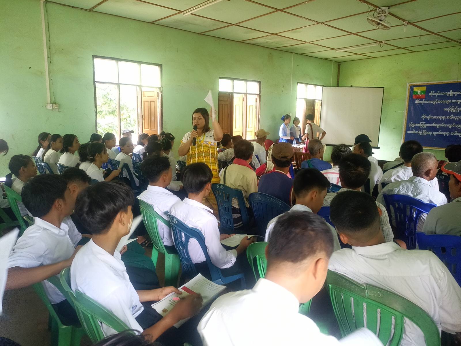 ထို့နောက် အထွေထွေအုပ်ချုပ်ရေးဦးစီးဌာန မြို့နယ်အုပ်ချုပ်ရေးမှူး ဦးထွန်းလင်းအောင်က ဒေသဖွံ့ဖြိုးရေး အခြေအနေများ ရှင်းလင်းပြောကြားခြင်း၊ မြို့နယ်လူမှုဝန်ထမ်းဦးစီးဌာန မြို့နယ်ဦးစီးမှူး ဦးစိုင်းရန်နောင်က ကလေးသူငယ်အခွင့်အရေးများဆိုင်ရာများ၊ မြို့နယ် ပြန်ကြားရေးနှင့်ပြည်သူ့ဆက်ဆံရေးဦးစီးဌာန ဦးစီးအရာရှိ ဦးစောသော်တာလင်းသန့်က ကျောင်းသား၊ကျောင်းသူများ ဗလငါးတန်ဖွံ့ဖြိုးရေး၊ ဘားအံခရိုင် ပတ်ဝန်ကျင်ထိန်းသိမ်းရေးဦးစီးဌာန၊ လက်ထောက်ညွှန်ကြားရေးမှူး ဦးကျော်ဆန်းက ပတ်ဝန်းကျင်ဆိုင်ရာ စီမံခန့်ခွဲရေးနှင့် ရာသီဥတု ပြောင်းလဲမှုဆိုင်ရာများအကြောင်းနှင့် မြို့နယ်ကရင်စာပေနှင့် ယဉ်ကျေးမှု တိုးတက်ပြန့်ပွားရေးအသင်းဥက္ကဋ္ဌ ဦးအုန်းတင်က မြို့နယ်အတွင်းရှိ ကရင်စာပေနှင့် ယဉ်ကျေးမှု တိုးတက်ပြန့်ပွားရေးလုပ်ငန်း ဆောင်ရွက်နေမှု အခြေအနေတို့ကို အသိပညာပေး ဟောပြောခဲ့သည်။