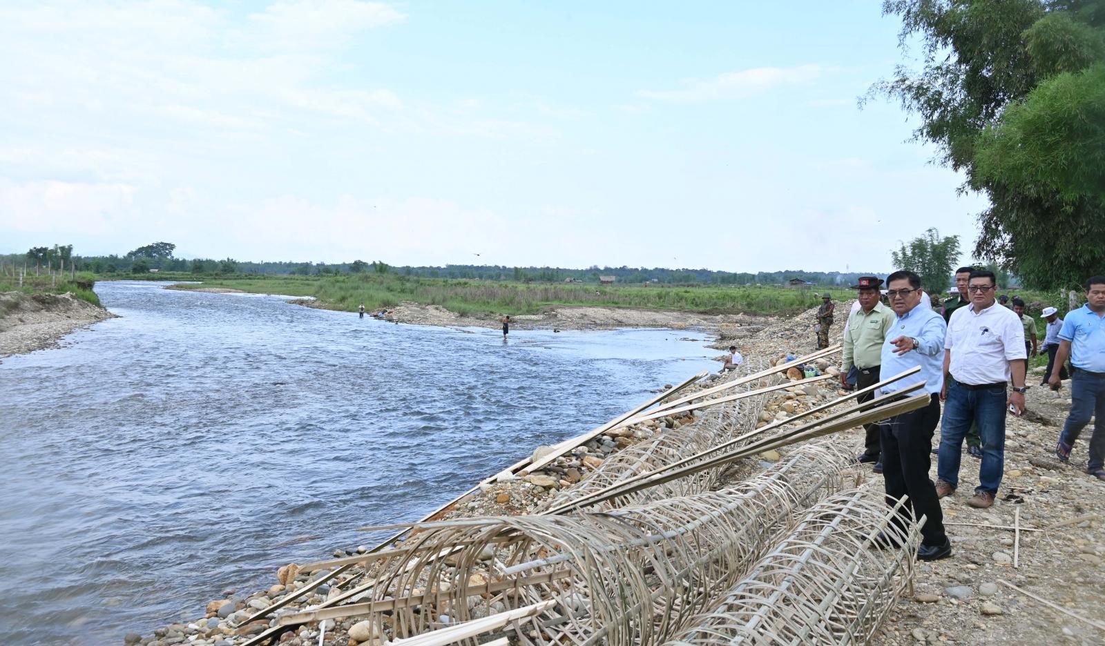ယင်းနောက် ပြည်နယ်ဝန်ကြီးချုပ်နှင့် တာဝန်ရှိသူများသည် မြို့မရပ်ကွက် နမ်ထွမ်ချောင်း ရေတိုက်စားမှုကြောင့် ယာယီရေထိန်းနံရံတည်ဆောက်နိုင်ရေး ရပ်ကွက်သူ/ ရပ်ကွက်သားများက ဝါးဖြင့် ပြင်ဆင်ဆောင်ရွက်နေမှုများကို သွားရောက်ကြည့်ရှု စစ်ဆေးခဲ့ကြကာ ယာယီတည် ဆောက်မှုအတွက် လိုအပ်သည်များကို ဖြည့်ဆည်းပေးနိုင်ရေးနှင့် ကျောက်စီမြေထိန်းနံရံတည် ဆောက် နိုင်ရေးအတွက် အမြန်ဆုံးတွက်ချက်တင်ပြနိုင်ရေး စီစဉ်ဆောင်ရွက်ပေးခဲ့ကြောင်း သိရသည်။