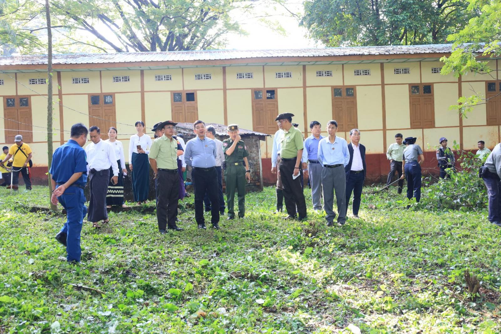 ထို့နောက် ပြည်နယ်ဝန်ကြီးချုပ်က စာသင်ကျောင်းဝင်း အတွင်း၊ အပြင် သန့်ရှင်းရေး ဆောင်ရွက်နေမှု အခြေအနေတို့အား လှည့်လည်ကြည့်ရှုစစ်ဆေးပြီး အခြေခံပညာစာသင်ကျောင်းအတွင်း ခြုံနွယ်ပေါင်းမြက်များ ခုတ်ထွင်ရှင်းလင်းခြင်း၊ အမှိုက်များရှင်းလင်းခြင်းနှင့် ရေစီးရေလာကောင်းမွန်စေရေး ရေနုတ်မြောင်းများတူးဖော်ပေးခြင်း၊ ဥပတိရုပ် ကောင်းမွန်စေရေးနှင့် ကျောင်းပတ်ဝန်းကျင် စိမ်းလန်းစိုပြေ၍ သန့်ရှင်းသာယာမှုရှိစေရေးအတွက် တာဝန်ရှိသူများနှင့် တွေ့ဆုံ၍ လိုအပ်သည်များကို ဖြည့်ဆည်း ဆောင်ရွက်ပေးခဲ့သည်။