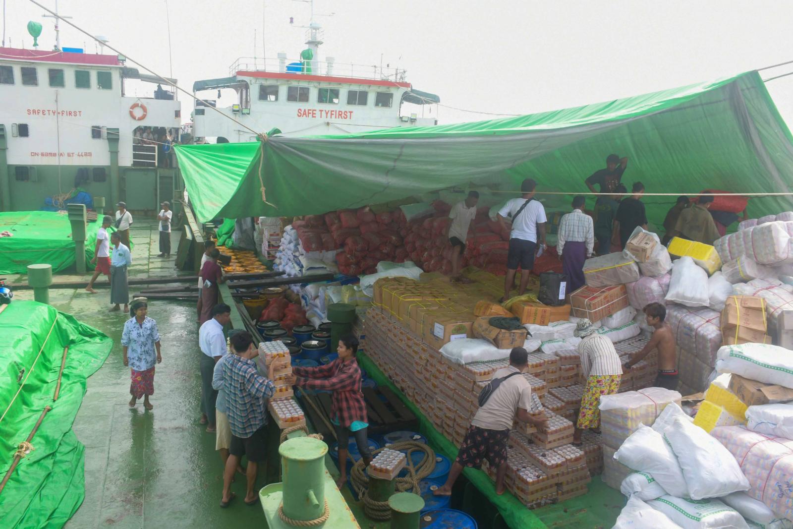 စစ်တွေမြို့တွင် ကုန်တင်ကုန်ချပြုလုပ်နေသော အမ်ဗွီရဲထွန်းအောင်(၁)သင်္ဘောတွင် ဆန်နှင့်အခြေခံ စားသောက်ကုန်ပစ္စည်းများ တန်ချိန် ၈၉၉ ဒသမ ၇ တန်တင်ဆောင်၍လည်းကောင်း၊ အမ်ဗွီအောင်ရတနာ သီရိ(၁)သင်္ဘောတွင် ဆန်နှင့်အခြေခံစားသောက်ကုန်ပစ္စည်းများ တန်ချိန် ၁၁၅၀ တန်တင်ဆောင်၍ လည်းကောင်း၊ အမ်ဗွီအောင်ရတနာဌေး သင်္ဘော ဆန်၊ စားသုံးဆီနှင့် အခြေခံ စားသောက်ကုန်ပစ္စည်းများ တန်ချိန် ၁၁၀၅ တန်တင်ဆောင်၍လည်းကောင်း၊ အမ်ဗွီမင်းခန့်ဖြိုးသင်္ဘောတွင် ဆန်နှင့်အခြေခံစားသောက်ကုန်ပစ္စည်းများ တန်ချိန် ၃၃၇ တန်တင်ဆောင်၍လည်းကောင်း စစ်တွေမြို့သို့ ရောက်ရှိလာခြင်းဖြစ်သည်။