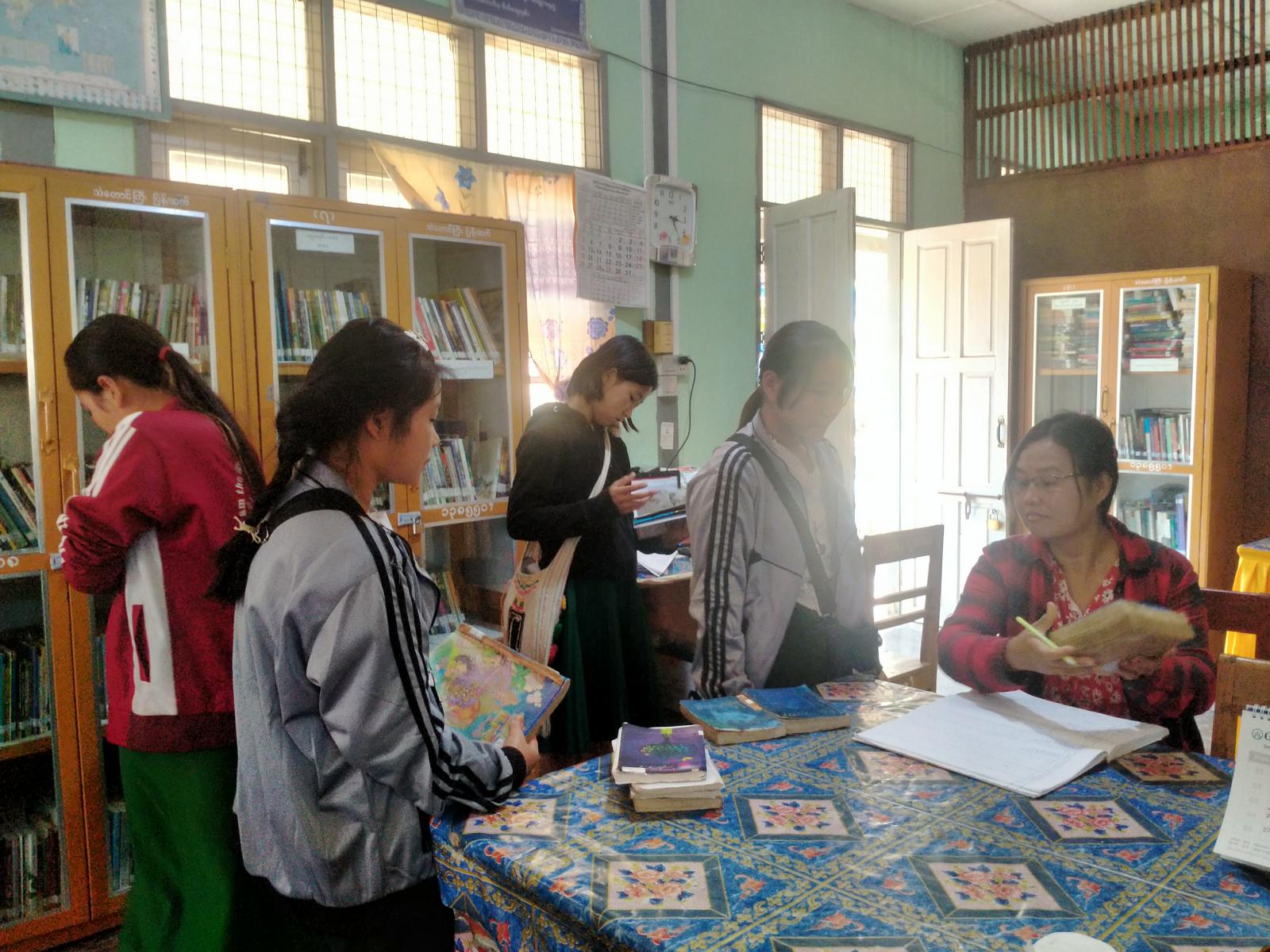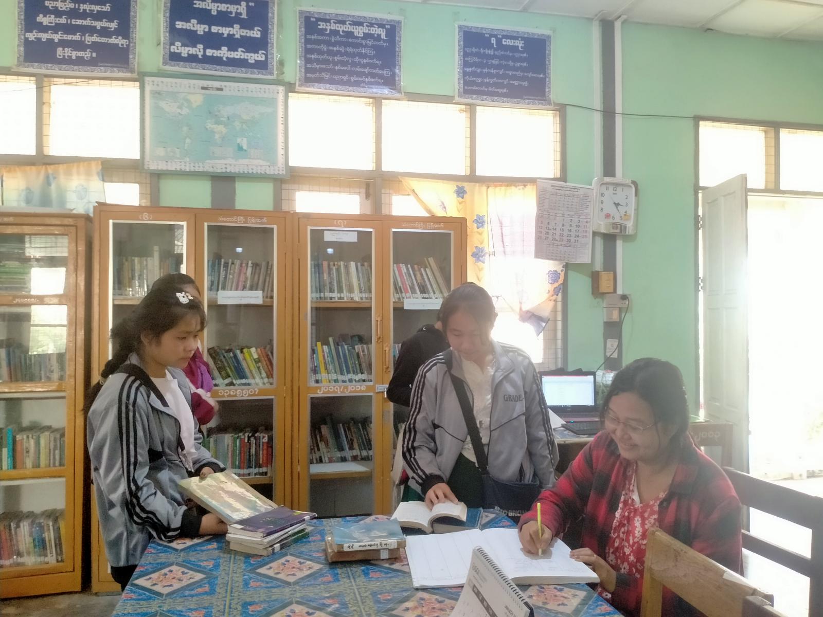 ကရင်ပြည်နယ်၊ သံတောင်ကြီးမြို့နယ်၊ ပြန်ကြားရေးနှင့်ပြည်သူ့ဆက်ဆံရေးဦးစီးဌာန၊ ပြည်သူ့စာကြည့်တိုက်သည် ရုံးဖွင့်ရက်များအတွင်းတွင် နံနက် ၉ နာရီမှ ညနေ ၄ နာရီခွဲထိ စာအုပ်စာစောင်၊ ရသ၊ ဗဟုသုတရရှိစေသည့်စာအုပ်များကိုငှားရမ်းပေးလျက်ရှိရာ ယမန်နေ့ မွန်းတည့် (၁၂) နာရီကျောင်းဆင်းချိန်နှင့် ညနေ ၃ နာရီခွဲကျောင်းဆင်းချိန်များတွင် ကျောင်းသား/ကျောင်းသူများက စာကြည့်တိုက်သို့ စာအုပ်/စာစောင်များ လာရောက်ငှားရမ်းဖတ်ရှုလျက်ရှိကြောင်း သိရသည်။