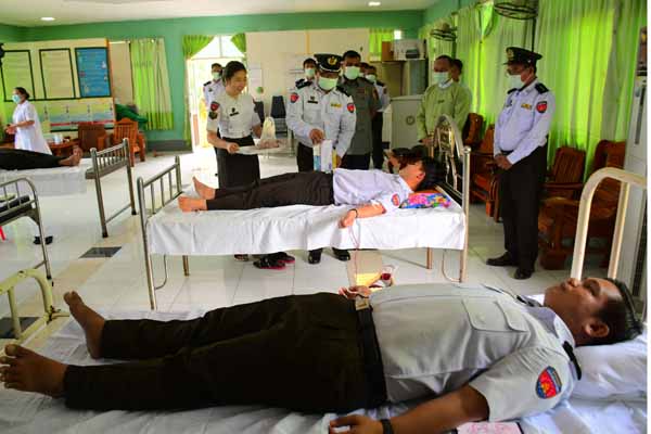 ထို့နောက် မြဝတီခရိုင် စီမံအုပ်ချုပ်ရေးအဖွဲ့ ခရိုင်အုပ်ချုပ်ရေးမှူး ဦးကောင်းစံလင်းနှင့်အဖွဲ့ဝင်များ၊ ကရင်ပြည်နယ်၊ လူဝင်မှု ကြီးကြပ်ရေးနှင့်ပြည်သူ့အင်အားဝန်ကြီးဌာန၊ ဒုတိယညွှန်ကြားရေးမှူး၊ ဦးမြင့်ဘုန်းတို့က စုပေါင်းသွေးလှူဒါန်းသည့် အရာထမ်း၊ အမှုထမ်းတို့အား ကြည့်ရှုအားပေးစကား ပြောကြားပြီး သွေးအလှူရှင်တစ်ဦးလျှင် ဖြည့်စွက်အာဟာရပြည့် ကြက်ဥ၊ ဘရန်းငှက်သိုက်၊ နွားနို့နှင့် ငွေကျပ်ငါးသောင်းနှုန်း ထောက်ပံ့ပေးအပ်ခဲ့ကြောင်း သိရသည်။