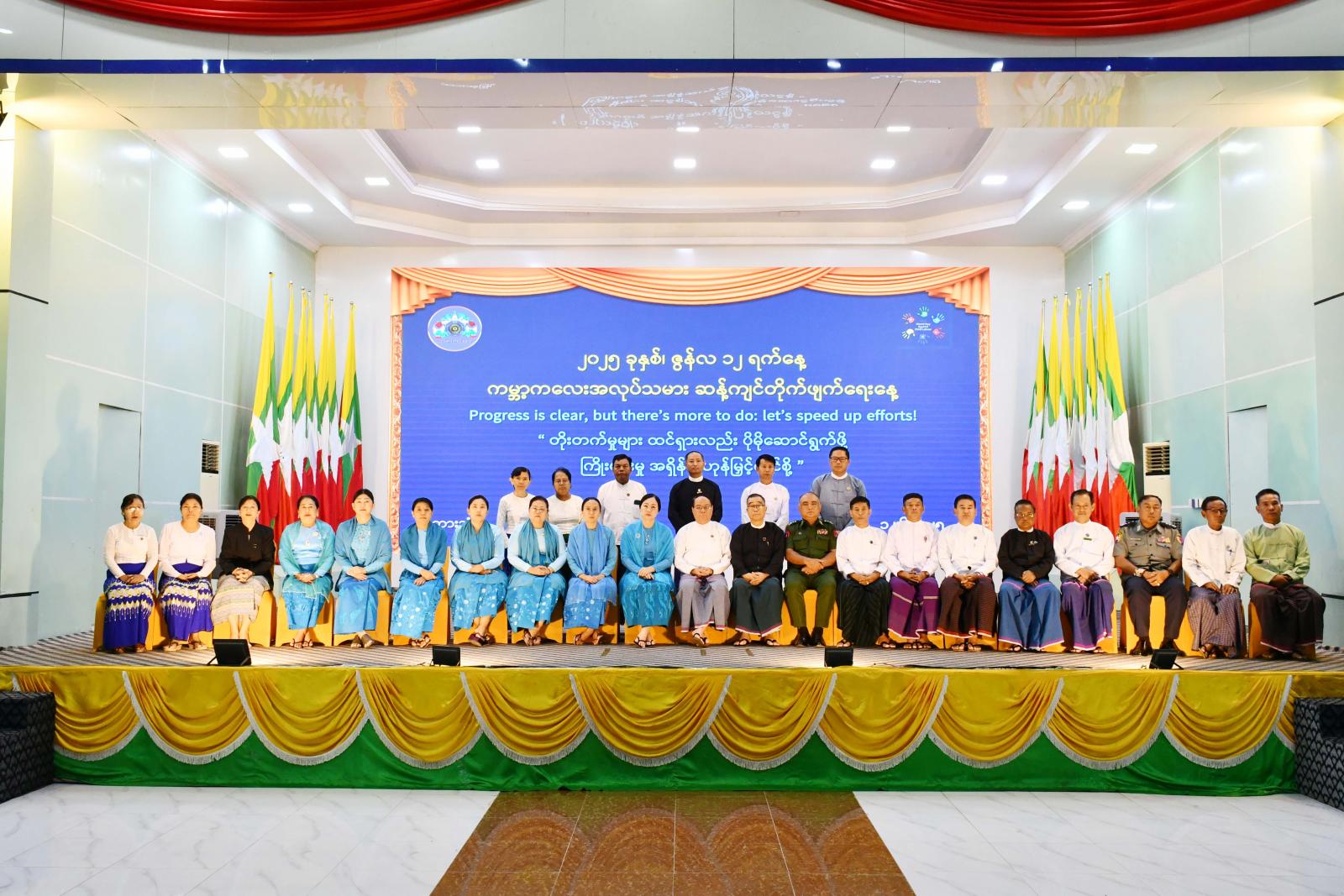 ဆက်လက်၍ ၂၀၂၅ ခုနှစ် ဇွန်လ ၁၂ ရက်နေ့တွင်ကျရောက်သည့် ကမ္ဘာ့ကလေးအလုပ်သမား ဆန့်ကျင်တိုက်ဖျက်ရေးနေ့ အခမ်းအနားကို နံနက် ၉ နာရီက ဘားအံမြို့၊ ဇွဲကပင်ခန်းမ၌ ကျင်းပရာ ကရင်ပြည်နယ်ကလေးအလုပ်သမားပပျောက်ရေးဆိုင်ရာလုပ်ငန်း ကော်မတီနာယက ပြည်နယ်ဝန်ကြီးချုပ် ဦးစောမြင့်ဦးက ကလေးအလုပ်သမားဖြစ်စေသည့် အခြေခံအကြောင်း အရင်းများကို ဖော်ထုတ်ပြီး ဖြေရှင်းဆောင်ရွက်ပေးမည့်နည်းလမ်းများဖြင့် ဆောင်ရွက်နိုင်ပါက ကလေးအလုပ်သမားလျော့နည်းပပျောက်ရေးအတွက် တွန်းအားတစ်ရပ်ဖြစ်လာနိုင်ကြောင်း၊ ကရင်ပြည်နယ် ကလေးအလုပ်သမားပပျောက်ရေးဆိုင်ရာလုပ်ငန်းကော်မတီအသီးသီးအနေဖြင့် မိမိတို့၏လုပ်ငန်းတာဝန်များကို အဓိကထားဆောင်ရွက်ပြီး လုပ်ငန်းကော်မတီအချင်းချင်းသော်လည်းကောင်း၊ သက်ဆိုင်ရာဌာနများ၊ လူမှုမိတ်ဖက်အဖွဲ့အစည်းများ၊ အစိုးရမဟုတ်သောအဖွဲ့အစည်းများနှင့်သော်လည်း ကောင်း ချိတ်ဆက်ပူးပေါင်း အကောင်အထည် ဖော်ဆောင်ရွက်ကြရန် တိုက်တွန်းပြောကြားသည်။