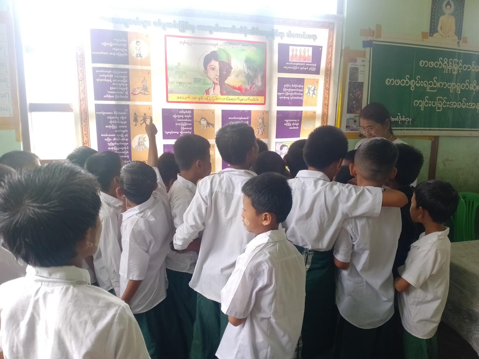 ဦးစွာကျောင်းအုပ် ဆရာမကြီး ဒေါ်ခင်ငြိမ်းအေးက အဖွင့်အမှာစကားပြောကြားပြီး ပြန်ကြားရေးနှင် ပြည်သူ့ဆက်ဆံရေးဦးစီးဌာန ဦးစီးအရာရှိ ဒေါ်ချိုမြတ်မြတ်ထွေးက ဗလငါးတန်နှင့်ပြည့်စုံသော ကျောင်းသား၊ကျောင်းသူများဖြစ်လာစေရန် စာဖတ်ခြင်း၏အကျိုးကျေးဇူးနှင့် ကလေးအလုပ်သမား ပပျောက်ရေးဆိုင်ရာအချက်များကို ပညာပေးဟောပြောခဲ့သည်။ ထို့နောက် ၂၀၂၅ ခုနှစ်၊ အပြည်ပြည်ဆိုင်ရာမူးယစ်ဆေးဝါးအလွဲသုံးမှုနှင့် တရားမဝင်ရောင်းဝယ်မှုတိုက်ဖျက်ရေးနေ့အကြို ပညာပေးပြခန်းကို ခင်းကျင်းပြသထားရာ ကျောင်းသား၊ကျောင်းသူများက စိတ်ပါဝင်စားစွာ လေ့လာကြည့်ရှုခဲ့ကြကြောင်း သိရသည်။