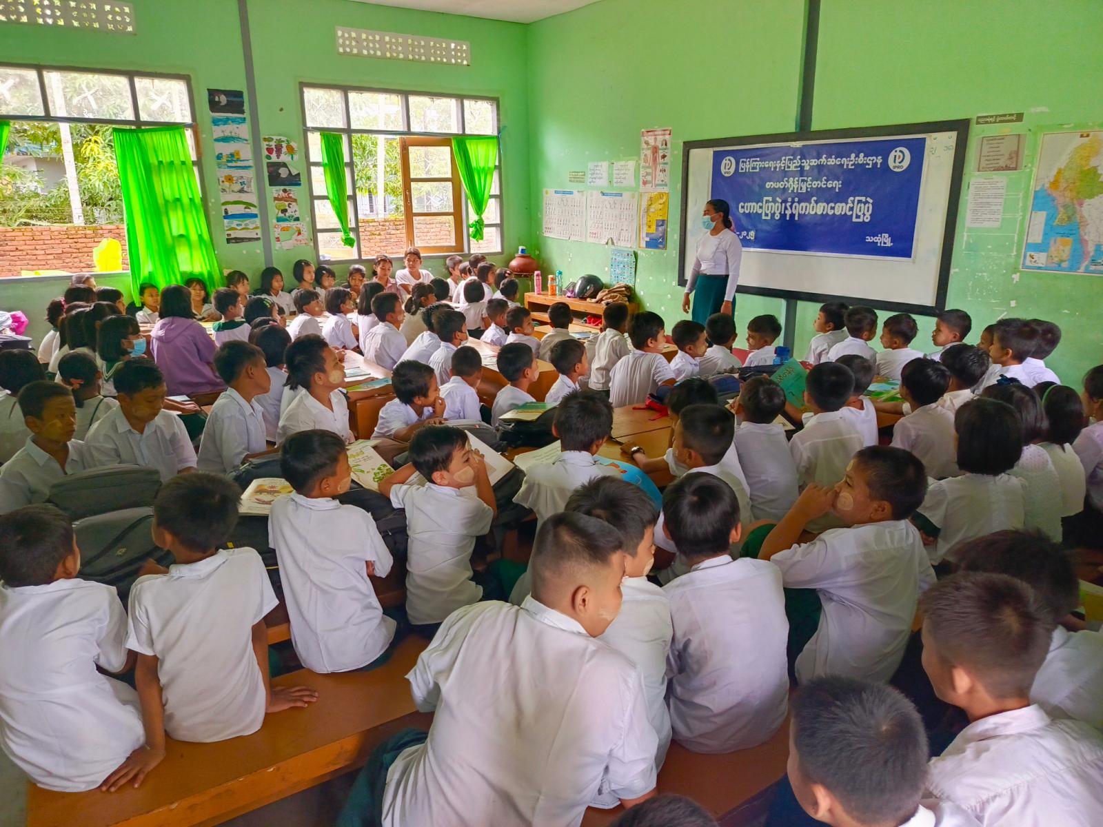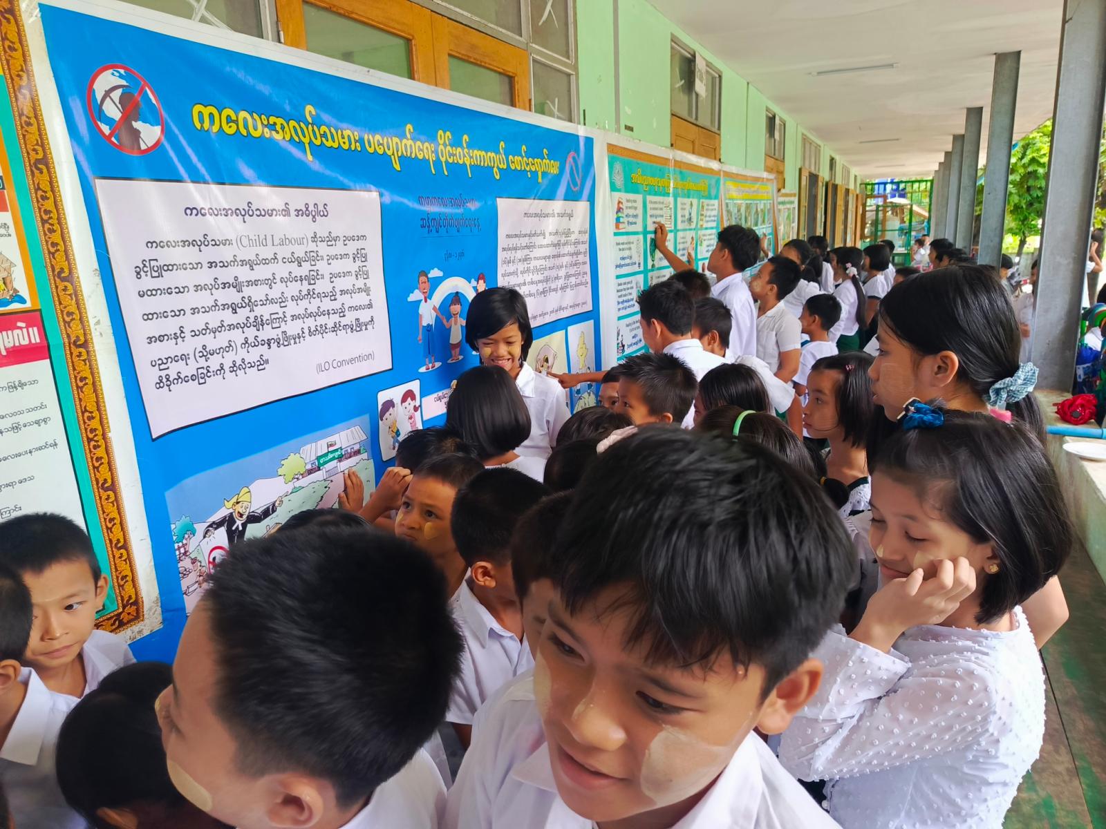အဆိုပါ အသိပညာပေးလုပ်ငန်းတွင် ပြန်ကြားရေးနှင့်ပြည်သူ့ဆက်ဆံရေးဦးစီးဌာနမှ ကျောင်းသူ၊ ကျောင်းသားများ ဖတ်ရှုလေ့လာနိုင်ရန် ကလေးကဗျာများ၊ ရုပ်ပြပုံပြင်များ၊ စာစောင်များ စသည့်ကလေးများ အသိပညာတိုးပွားရေး စာအုပ်၊ စာပေများနှင့် စာဖတ်ရှိန်မြှင့်တင်ရေး၊ ကလေးအလုပ်သမားပပျောက်ရေး စသည့် အသိပညာပေး နံရံကပ်စာစောင်များတို့ကို ခင်းကျင်းပြသရာ ကျောင်းသား၊ ကျောင်းသူများမှ စိတ်ပါ၀င်စားစွာ ကြည့်ရှုလေ့လာခဲ့ကြောင်း သိရသည်။
