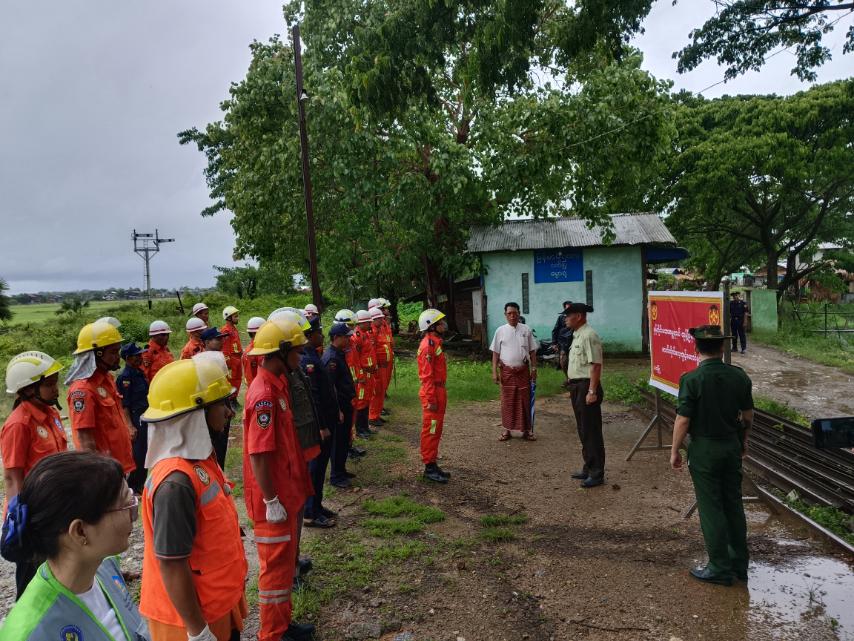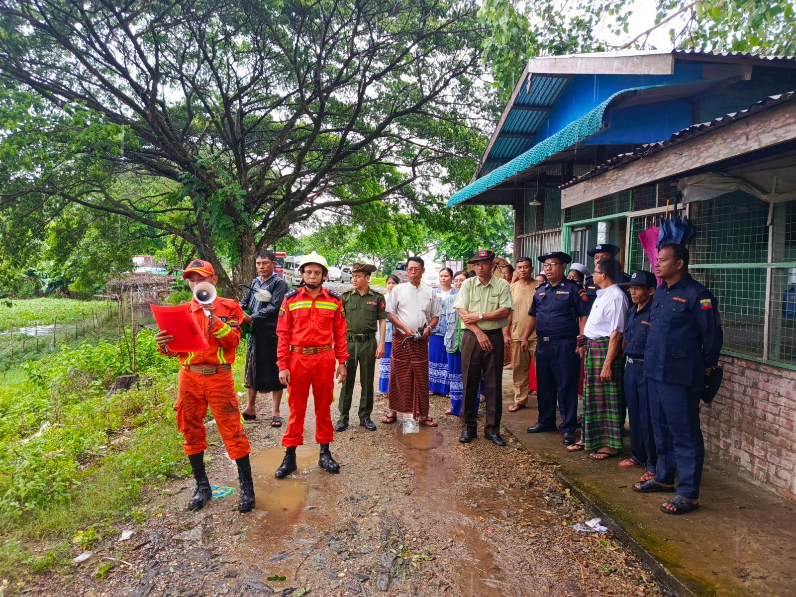 အဆိုပါဇာတ်တိုက်လေ့ကျင့်ရာသို့ မြို့နယ်သဘာဝဘေးစီမံခန့်ခွဲမှုကော်မတီဝင်များ၊ မြို့နယ်စီမံအုပ်ချုပ်ရေးအဖွဲ့ဝင်များ၊ ခရိုင်ဘေးအန္တရာယ်ဆိုင်ရာ စီမံခန့်ခွဲမှုဦးစီးဌာနမှဝန်ထမ်းများ၊ သန္ဓေနှင့် အရန်မီးသတ်တပ်ဖွဲ့ဝင်များ၊ ကျန်းမာရေးဝန်ထမ်းများ၊ လူမှုကူညီရေးအဖွဲ့များ၊ ရပ်ကွက်/ကျေးရွာအုပ်ချုပ်ရေးအဖွဲ့များနှင့် ပြည်သူများ ပူးပေါင်းဆောင်ရွက်ခဲ့ကြကြောင်း သိရသည်။