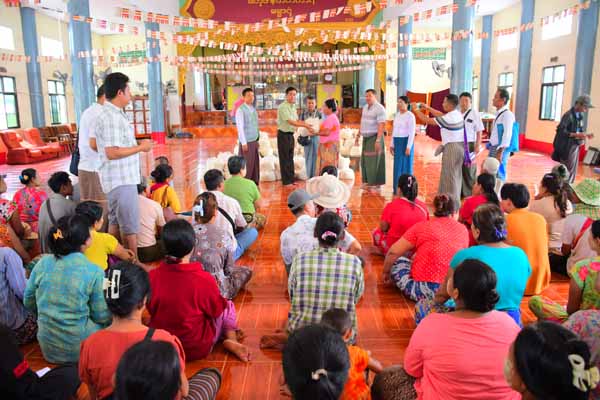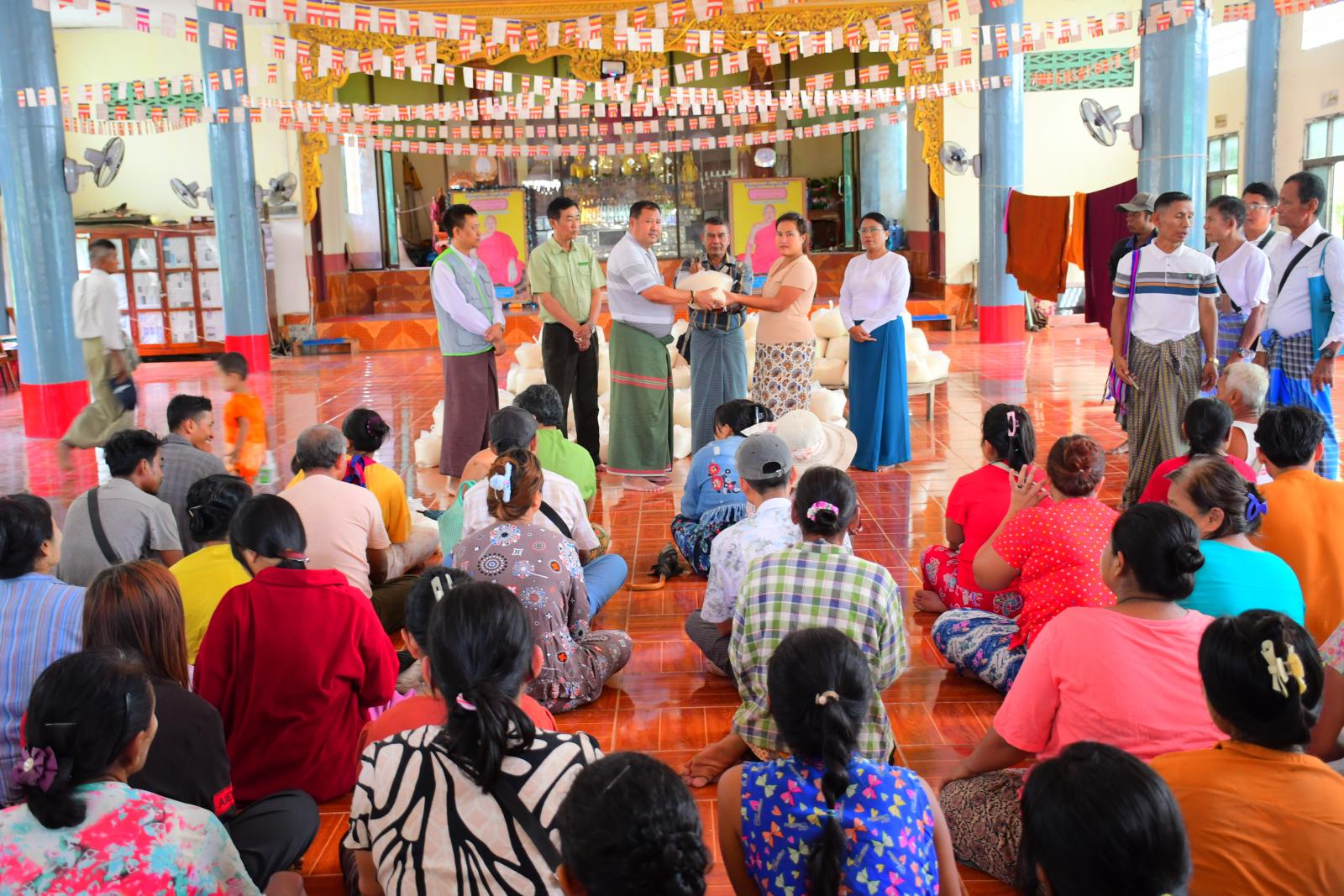 ကရင်ပြည်နယ်၊ မြဝတီမြို့နယ်၊ မြို့ပေါ်ရပ်ကွက်(၅)ခုအတွင်းရှိ ယာယီနေရပ်စွန့်ခွာပြည်သူများအား ဆန်အိတ်များထောက်ပံ့ပေးအပ်ခြင်းကို ဇွန်လ ၁၃ ရက်နေ့နေ့လယ်(၁)နာရီက အမှတ်(၁)ရပ်ကွက် အုပ်ချုပ်ရေးမှူးရုံးနှင့် အမှတ်(၄)ရပ်ကွက်ရှိ ကြခတ္တောဘုန်းကြီးကျောင်း ဓမ္မာရုံတို့၌ ဆောင်ရွက်သည်။