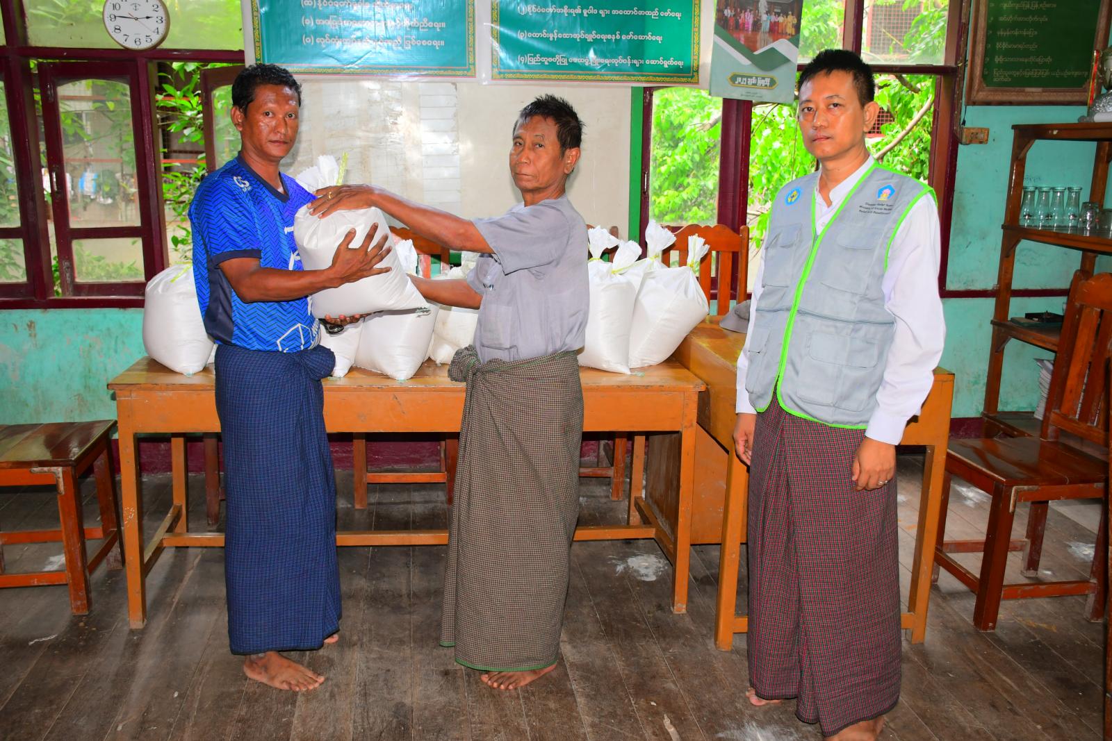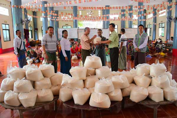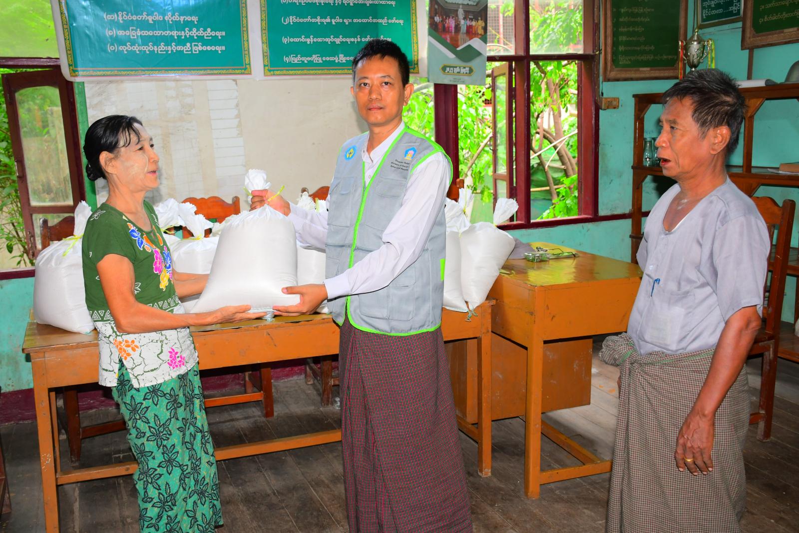ထိုသို့ထောက်ပံ့ပေးအပ်ရာတွင် မြို့နယ်စီမံအုပ်ချုပ်ရေးအဖွဲ့ မြို့နယ်အုပ်ချုပ်ရေးမှူး ဦးသန်းနိုင်၏ဦးဆောင်မှုဖြင့် ခရိုင်ဘေးအန္တရာယ်ဆိုင်ရာစီမံခန့်ခွဲမှုဦးစီးဌာန၊ ဒုတိယညွှန်ကြားရေးမှူး ဦးဉာဏ်မြင့်၊ အမှတ်(၁)ရပ်ကွက် အုပ်ချုပ်ရေးမှူး ဦးအောင်သန်း၊ အမှတ်(၄)ရပ်ကွက် အုပ်ချုပ်ရေးမှူး ဦးစိန်ထွန်းနှင့် ရာအိမ်မှူးတို့က ကိုးရီးယားနိုင်ငံမှလှူဒါန်းသည့် ဆန်အိတ် (၃၅၈)အိတ် (၄၀ ကီလိုဂရမ်) အား ယာယီနေရပ်စွန့်ခွာပြည်သူ အိမ်ထောင်စု (၆၂၇)စု၊ လူဦးရေ(၂၀၄၈)ဦးအတွက် ထောက်ပံ့ပေးအပ်ခဲ့ခြင်းဖြစ်သည်။