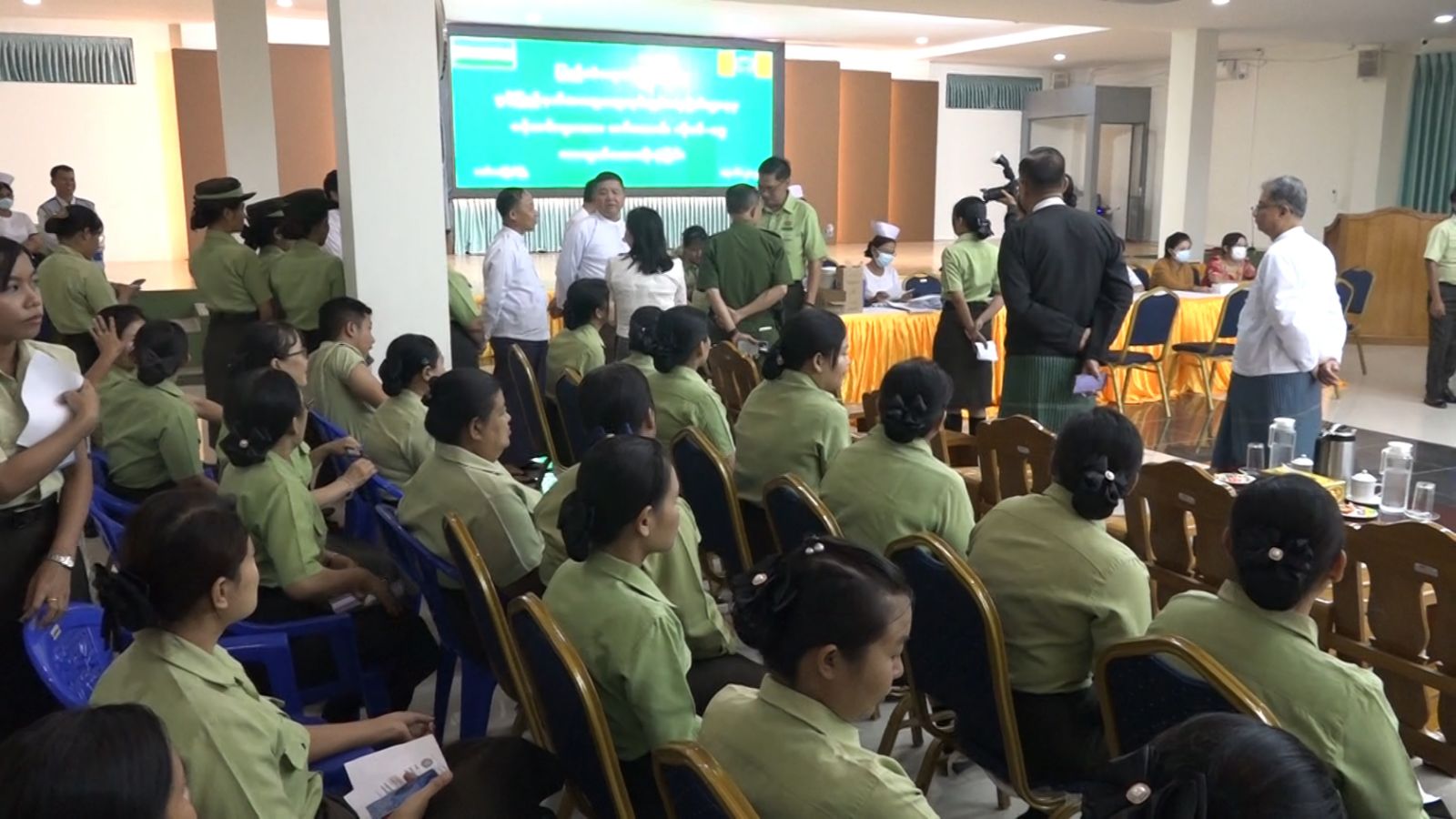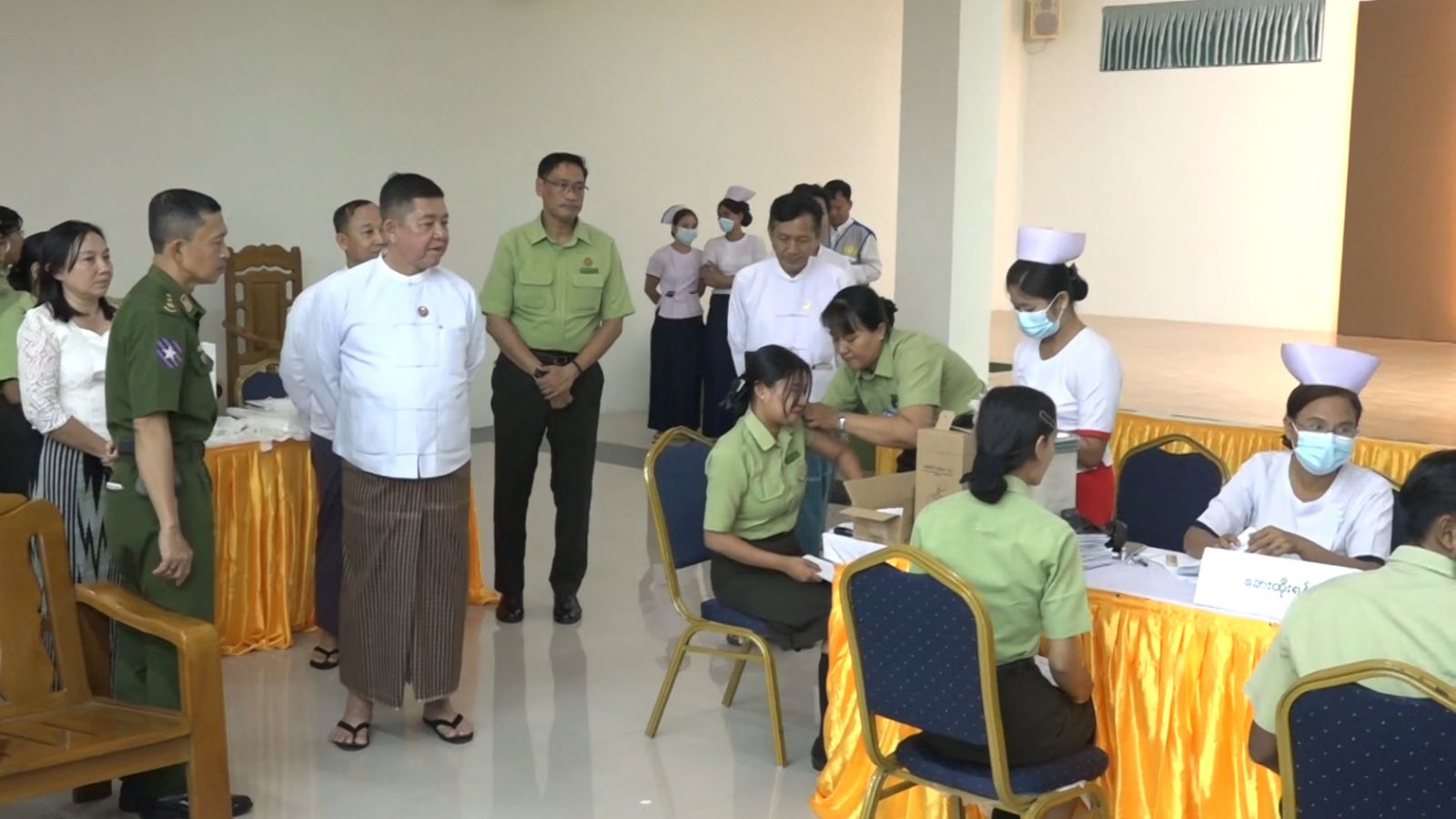 Pfizer ကိုဗစ်-၁၉ ရောဂါကာကွယ်ဆေးထပ်ဆောင်း ထိုးနှံပေးခြင်း ဆောင်ရွက်ပေးနေမှုကို ဇွန်လ (၁၃) ရက်နေ့ မွန်းလွဲပိုင်းက မွန်ပြည်နယ် အထွေထွေအုပ်ချုပ်ရေးဦးစီးဌာနရုံး ရာမညခန်းမ၌ ကျင်းပပြုလုပ်ရာ အထွေထွေအုပ်ချုပ်ရေးဦးစီးဌာန ဝန်ထမ်း များနှင့်မိသားစုဝင်များအား ပြည်နယ် ဖပြည်သူ့ကျန်းမာရေးဦးစီးဌာနမှဝန်ထမ်းများက (Pfizer) ကိုဗစ်-၁၉ရောဂါ ကာကွယ်ဆေး ထပ်ဆောင်းထိုးနှံပေးနေမှုကို ပြည်နယ်ဝန်ကြီးချုပ် ဦးအောင်ကြည်သိန်း၊ ပြည်နယ်အစိုးရအဖွဲ့ဝင် ဝန်ကြီးများနှင့်တာဝန်ရှိသူများက လိုက်လံကြည့်ရူ့ အားပေးပြီး ပြည်နယ်ဝန်ကြီးချုပ်က ကာကွယ်ဆေး လာရောက်ထိုးနှံပေးသည့် ကျန်းမာရေးဦးစီးဌာနမှ ဝန်ထမ်းများအား အမှတ်တရလက်ဆောင်ပစ္စည်းများ ချီးမြှင့်ပေးအပ်သည်။