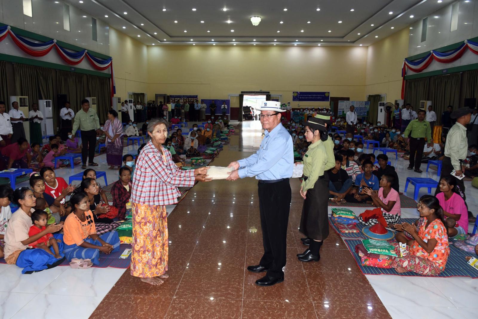 ဆက်လက်၍ ပြည်နယ်ဝန်ကြီးချုပ်နှင့်အဖွဲ့သည် သဘာဝဘေးကျရောက်လာပါက အရေးပေါ်တုံ့ပြန်ဆောင်ရွက်နိုင်ရန် တုံ့ပြန်ဆောင်ရွက်ရေးအဖွဲ့များ၏ ကွပ်ကဲရေးရုံး၊ ဆက်သွယ်ရေးရုံး၊ သတင်းနှင့်ပြန်ကြားရေးရုံး၊ ကျန်းမာရေးနှင့်ကုသရေးဦးစီးဌာနတို့၏ စုဖွဲ့ပြင်ဆင်ထားရှိမှု၊ ဘေးအန္တရာယ်ဆိုင်ရာ စီမံခန့်ခွဲမှုဦးစီးဌာနက ထောက်ပံ့ပေးမည့်ပစ္စည်းများ၊ ဇွဲကပင်ခန်းမအတွင်း ရေဘေးကယ်ဆယ်ရေးစခန်းဖွင့်လှစ်ထားမှုတို့အား ကြည့်ရှုစစ်ဆေးပြီး ရေဘေးသဏ္ဍာန်တူ သရုပ်ပြလေ့ကျင့်ကြသည့် ဒေသခံပြည်သူများအား ရင်းရင်းနှီးနှီးတွေ့ဆုံ နှုတ်ဆက်၍ အားပေးစကားများပြောကြားကာ ပြည်နယ်ဝန်ကြီးချုပ်နှင့်တာဝန်ရှိသူများသည် ပြည်သူလူထု(၁၀၀)ဦးအား ကယ်ဆယ်ရေး ပစ္စည်းများနှင့် စားသောက်ကုန်များ ပေးအပ်ချီးမြှင့် ခဲ့ကြကြောင်း သတင်းရသည်။