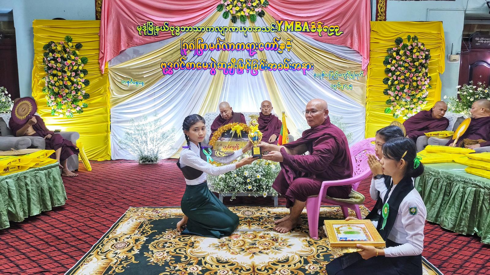 မွန်ပြည်နယ် မုဒုံမြို့နယ်တွင် (၃၈) ဖြာ မင်္ဂလာတရားတော်နှင့် ဗုဒ္ဓဝင်စာမေးပွဲတွင် ထူးချွန်စွာအောင်မြင်ခဲ့ကြသည့် ကျောင်းသား/သူများအား ဆုချီးမြှင့်ခြင်းအခမ်းအနားကို ယနေ့နံနက် (၈) နာရီက ကန်ကြီးဓမ္မရာဇိန်ကျောင်းတိုက်ရှိ ဓမ္မာရုံ၌ ပြုလုပ်သည်။
