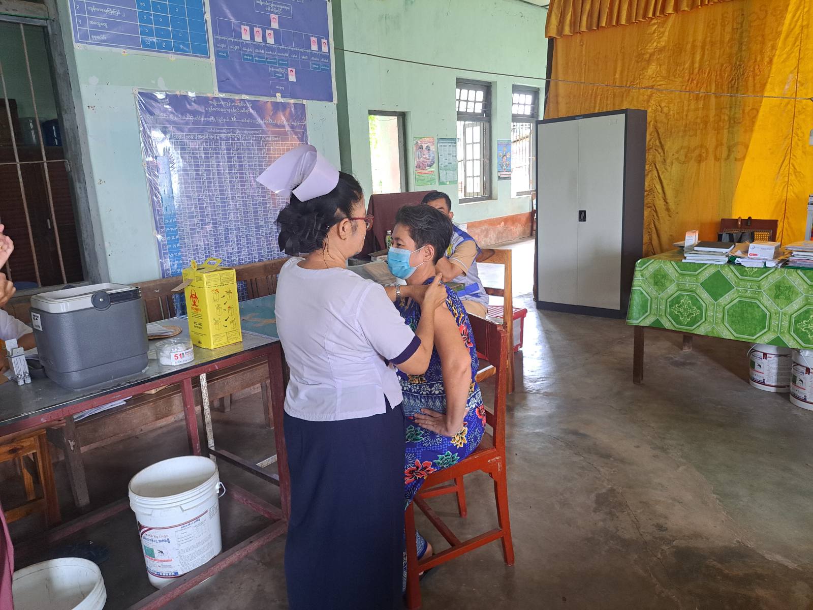 ကာကွယ်ဆေးထိုးနှံရာတွင် ခရိုင်ပြည်သူ့ကျန်းမာရေး ဦးစီးဌာနမှူး ဒေါက်တာသန်းဦး၊ ခရိုင်ကျန်းမာရေးမှူး ဦးစိုးအောင်နှင့် ကျန်းမာရေးဝန်ထမ်းများက (Pfizer) အမျိုးအစား ကိုဗစ်-၁၉ ရောဂါ ကာကွယ်ဆေးများကို မြို့နယ်အတွင်းရှိ အသက်(၁၈)နှစ်နှင့်အထက် ကိုဗစ်(၁၉)ရောဂါ ကာကွယ်ဆေး မထိုးနှံရသေးသည့် သူများ၊ နိုင်ငံ့ဝန်ထမ်းများ၊ ထပ်ဆောင်းထိုးနှံကြမည့် ပြည်သူများအား ကာကွယ်ဆေးထိုးနှံရေး လမ်းညွှန်ချက်များနှင့်အညီ ထိုးနှံပေးခဲ့ကြသည်။