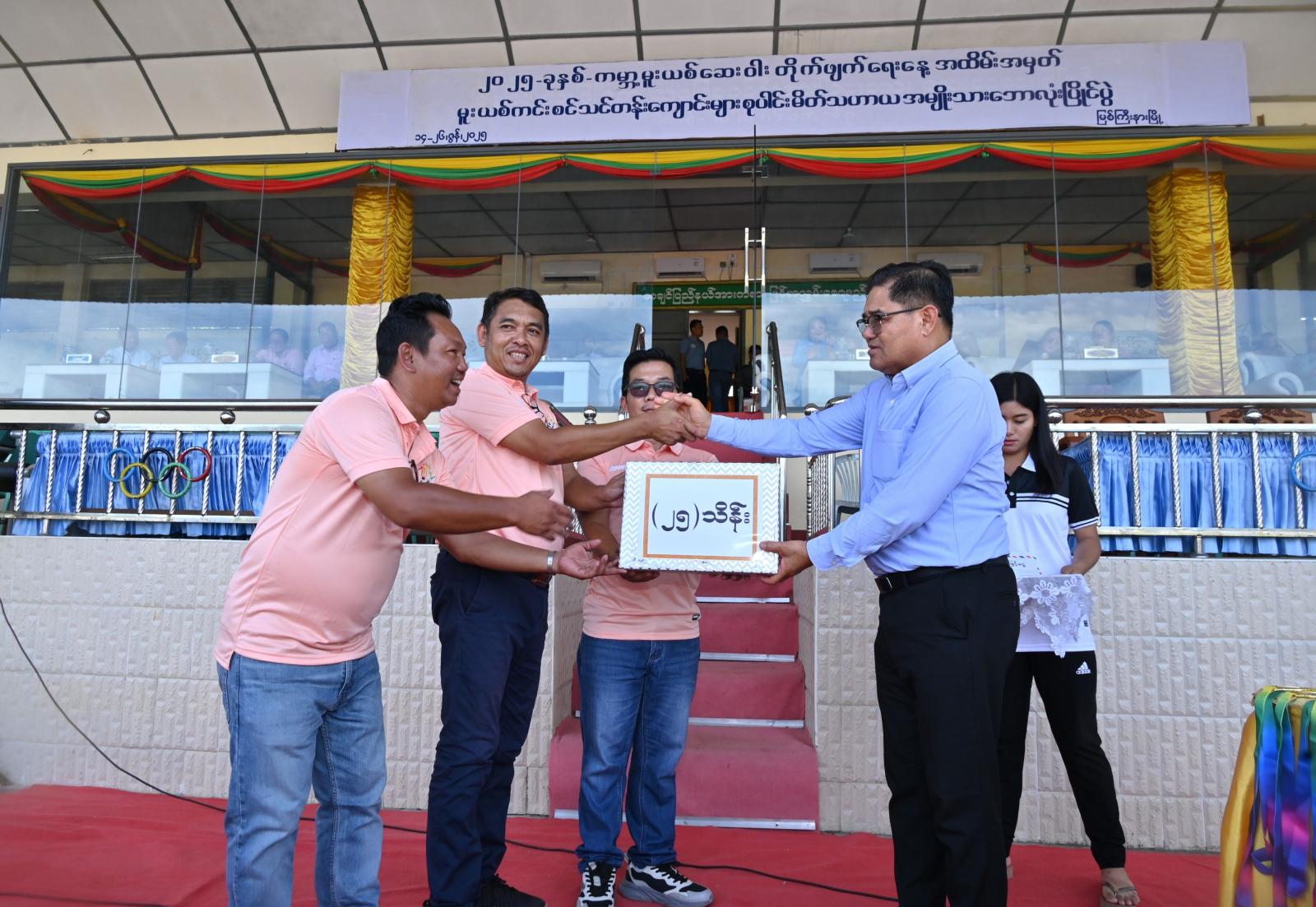 ထို့နောက် မူးယစ်ကင်းစင်ကျောင်းများ စုပေါင်းမိတ်သဟာယအဖွဲ့၏ ဘောလုံးပွဲဖြစ်မြောက်ရေးကော်မတီဥက္ကဋ္ဌက နှစ်စဉ်စုပေါင်းမိတ်သဟာယအဖွဲ့ဝင် ကျောင်းများအချင်းချင်းစုဝေး၍ ဘောလုံးပွဲကျင်းပပြုလုပ်ခဲ့မှုအခြေအနေများနှင့် ရည်ရွယ်ချက်များကို ရှင်းလင်းတင်ပြရာ ပြည်နယ်ဝန်ကြီးချုပ်က ဘောလုံးပြိုင်ပွဲအတွက် ချီးမြှင့်ငွေကျပ် ၂၅ သိန်းကို ပေးအပ်ချီးမြှင့်ခဲ့ သည်။