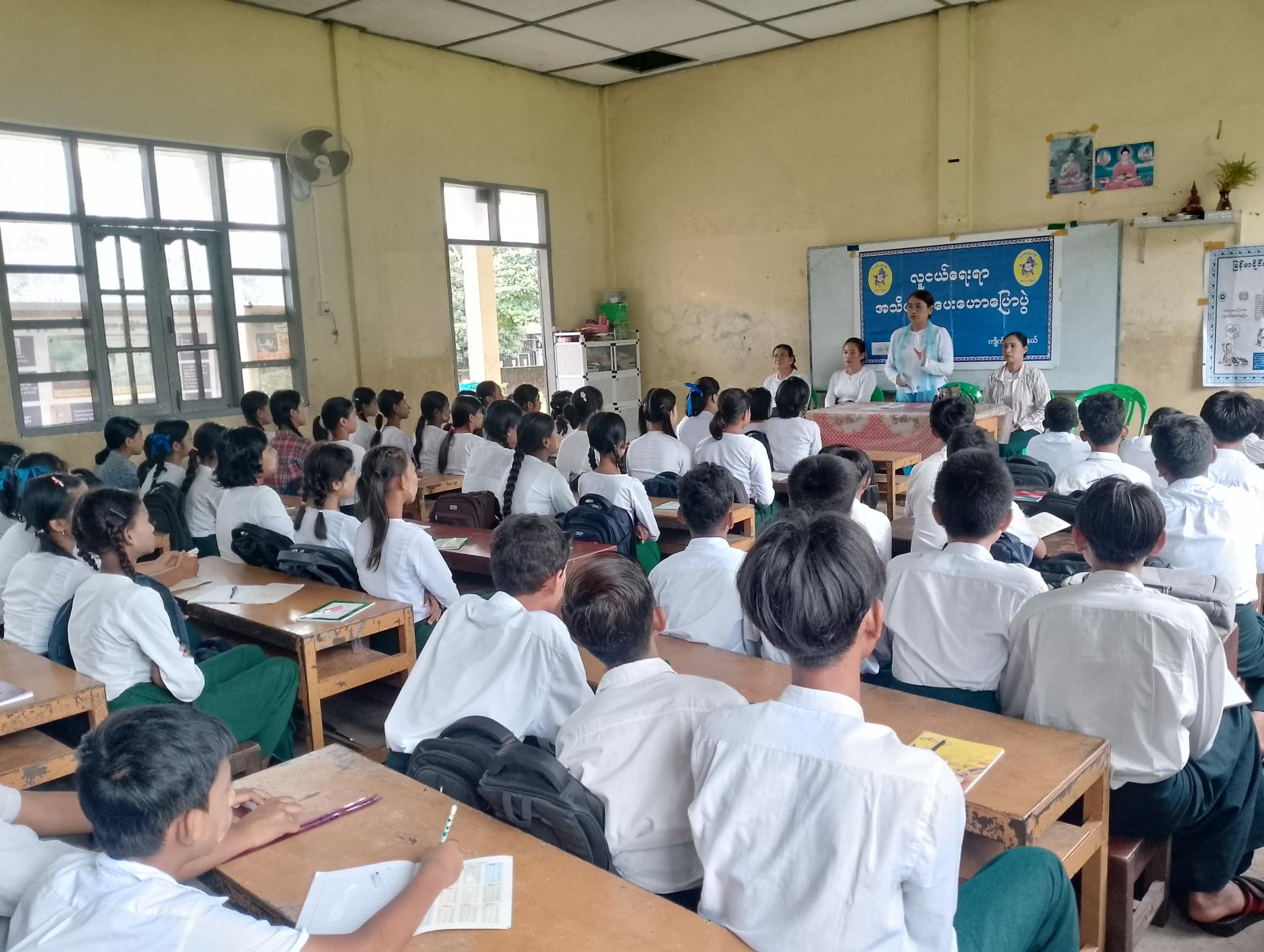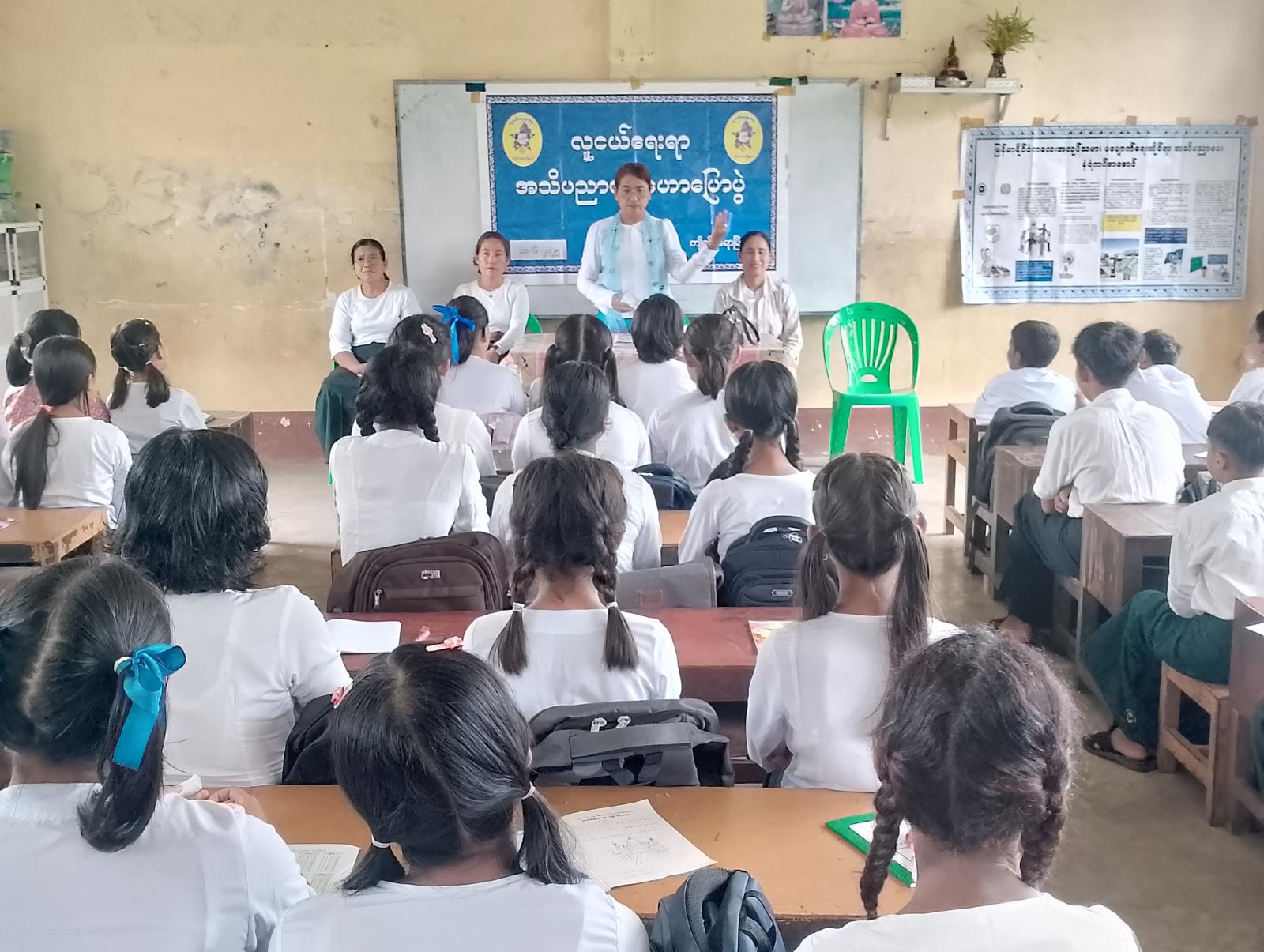 ထို့နောက် ပြန်ကြားရေးနှင့်ပြည်သူ့ဆက်ဆံရေးဦးစီးဌာနက ပြသထားသော ကလေးအလုပ်သမားပပျောက်ရေးဆိုင်ရာ ပညာပေးပြခန်းနှင့် မူးယစ်ဆေးဝါး ပညာပေးပြခန်းများကို ပြသပေးခဲ့ရာ ကျောင်းသား၊ ကျောင်းသူများက စိတ်ပါဝင်စားစွာ လေ့လာကြည့်ရူခဲ့ကြသည်။