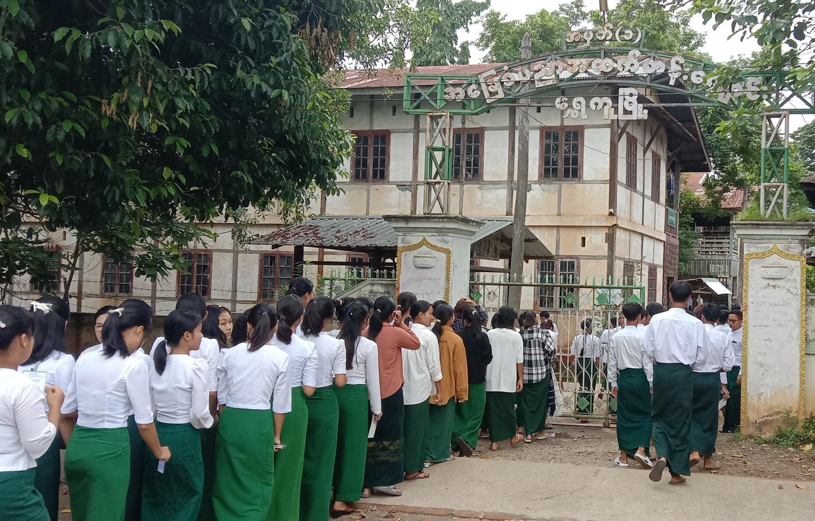 ငလျင်ဘေးအန္တာရာယ်ကြောင့် အဖြေလွှာများ ပျက်စီးခဲ့ရသည့် ကျောင်းသား၊ ကျောင်းသူများ၏ ၂၀၂၅ ခုနှစ် တက္ကသိုလ်ဝင်စာမေးပွဲကို ယနေ့နံနက် ၉ နာရီခန့်က ကချင်ပြည်နယ်၊ ဗန်းမော်ခရိုင်၊ ရွှေကူမြို့နယ်၊ အမှတ်(၁)အခြေခံပညာအထက်တန်းကျောင်းစာစစ်ဌာန၌ စတင်ဖြေဆိုလျက်ရှိရာ ကျောင်းသား၊ ကျောင်းသူ စုစုပေါင်း(၇၀၈)ဦး ဖြေဆိုလျက်ရှိကြောင်း သိရသည်။