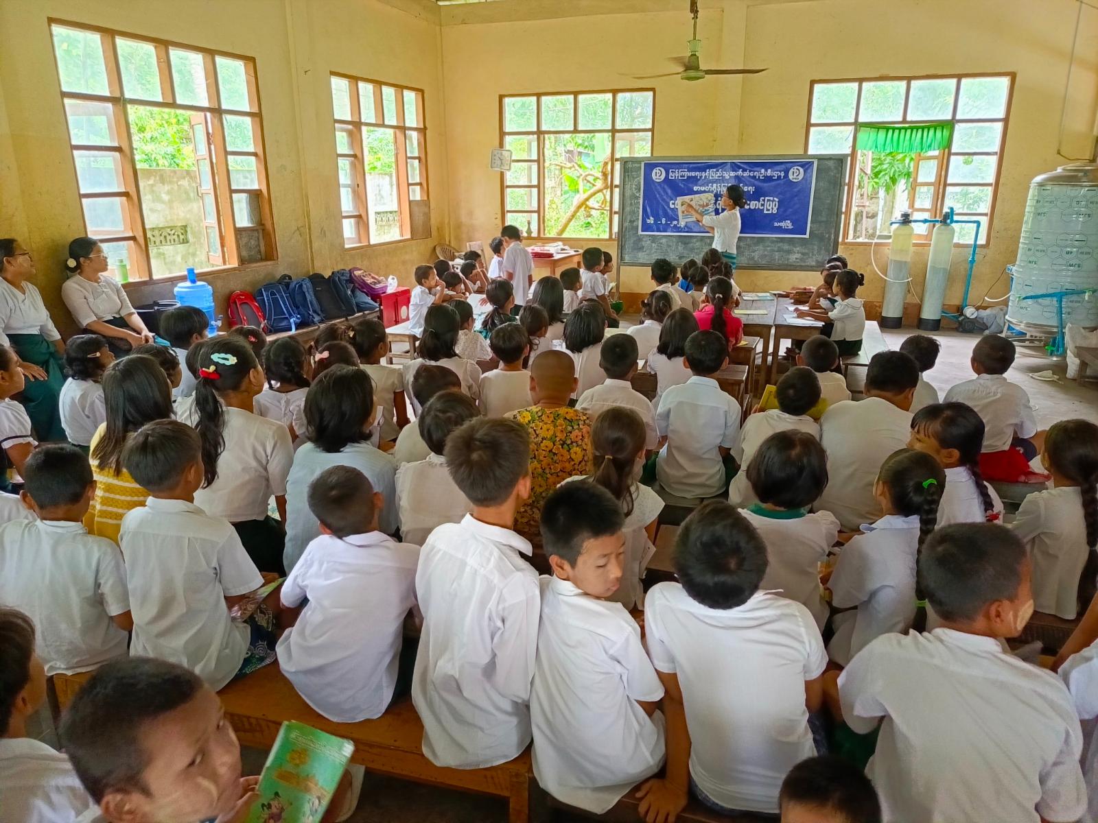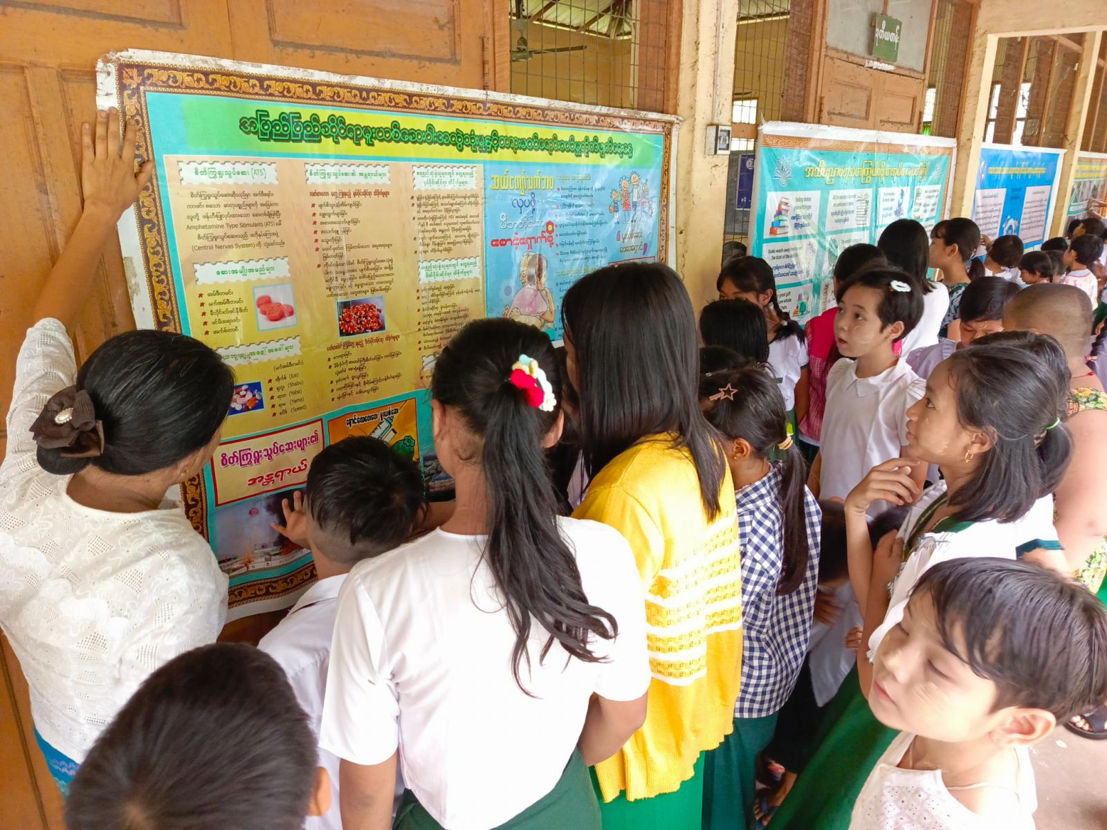 အဆိုပါအသိပညာပေးလုပ်ငန်းတွင် ပြန်ကြားရေးနှင့်ပြည်သူ့ဆက်ဆံရေးဦးစီးဌာနမှ ကျောင်းသူ၊ ကျောင်းသားများ ဖတ်ရှုလေ့လာနိုင်ရန် ကလေးကဗျာများ၊ ရုပ်ပြပုံပြင်များ၊ စာစောင်များ စသည့်ကလေးများ အသိပညာတိုးပွားရေးစာအုပ်စာပေများနှင့် စာဖတ်ရှိန်မြှင့်တင်ရေး၊ ကလေးအလုပ်သမားပပျောက်ရေး စသည့်အသိပညာပေးနံရံကပ်စာစောင်များတို့ကို ခင်းကျင်းပြသရာ ကျောင်းသား၊ ကျောင်းသူများမှစိတ်ပါ၀င်စားစွာ ကြည့်ရှုလေ့လာခဲ့ကြောင်း သိရသည်။
