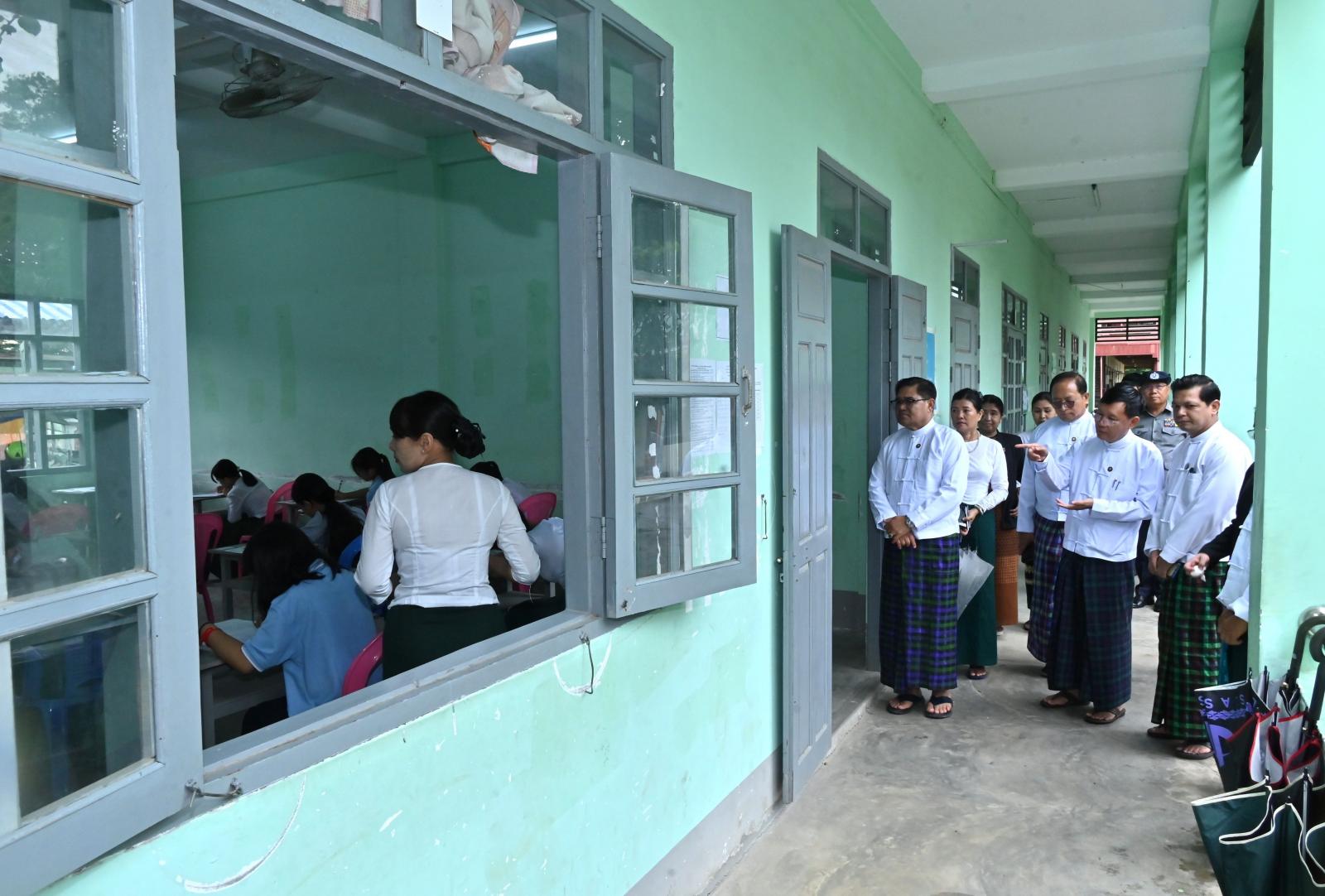 ထို့နောက် စာသင်ခန်းများအတွင်း ဖြေဆိုလျက်ရှိသော ကျောင်းသား/ ကျောင်းသူများအားလည်းကောင်း၊ ကြီးကြပ်ရေးအဖွဲ့ဝင် ဆရာ၊ ဆရာမများနှင့် အရေးပေါ်ကျန်းမာရေး စောင့်ရှောက်မှုပေးရန် စနစ်တကျစုဖွဲ့ထားသော အဖွဲ့အစည်းများအား လိုက်လံကြည့်ရှုအားပေးခဲ့ကြသည်။