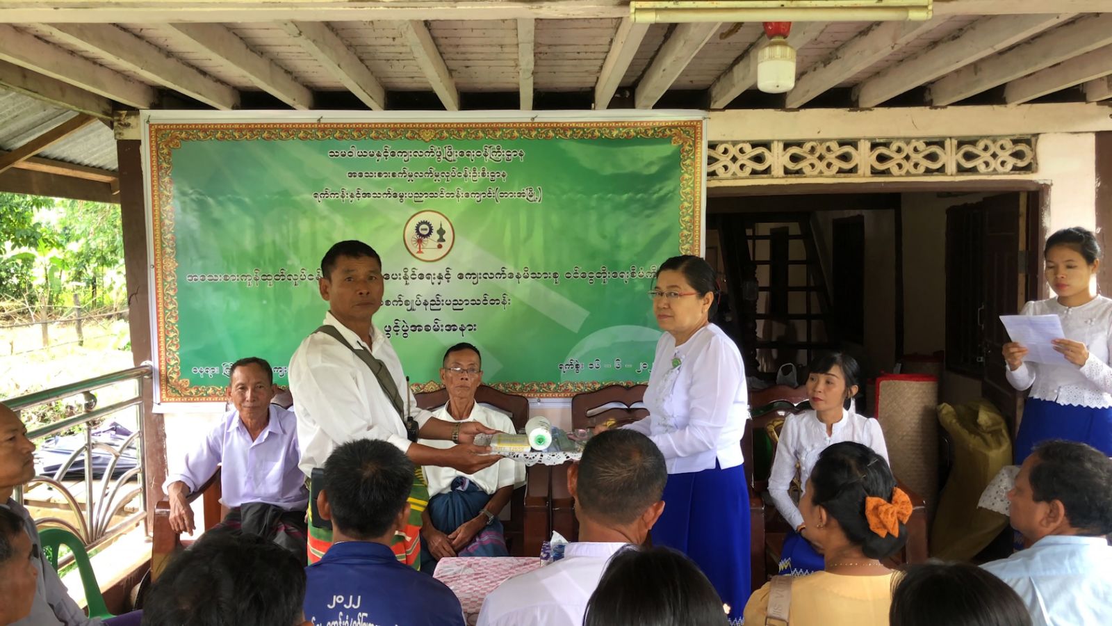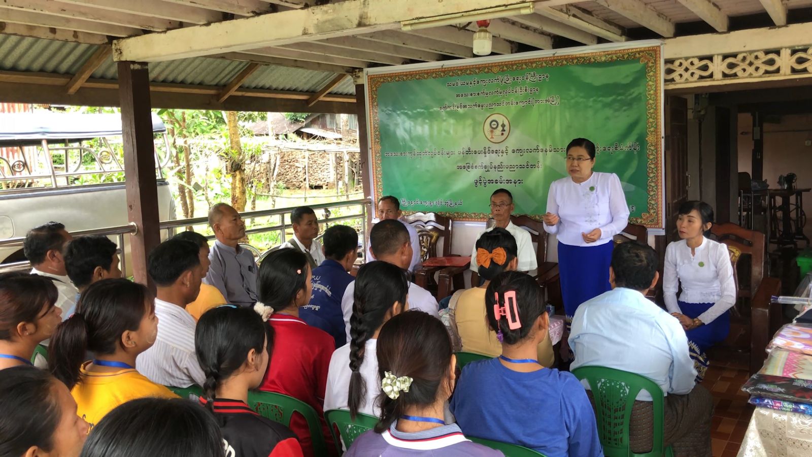 သင်တန်းဖွင့်ပွဲတွင် ရက်ကန်းနှင့် အသက်မွေးပညာသင်တန်းကျောင်း(ဘားအံ)မှ ကျောင်းအုပ်က သင်တန်းအဖွင့်အမှာစကားပြောကြားပြီး သင်တန်းအတွက် သင်ထောက်အကူပစ္စည်းများအား စီမံကိန်းကော်မတီဝင် (၁)ဦးထံ ပေးအပ်ကာ သင်တန်းနည်းပြက ဘက်စုံသုံးကုန်ကြမ်းပစ္စည်း များအား စီမံကိန်းကော်မတီဝင်များထံ ပေးအပ်ခဲ့သည်။