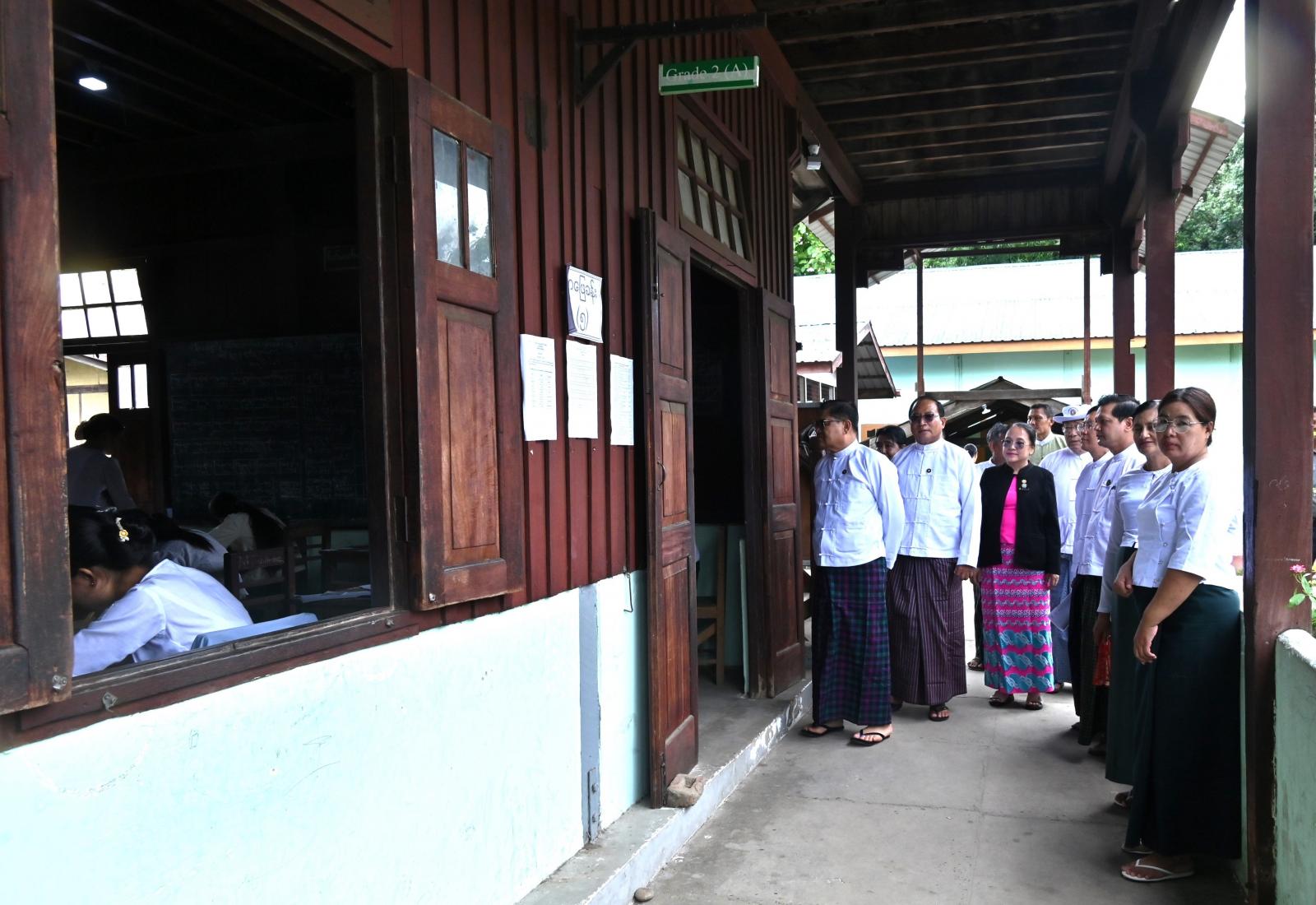 ထိုသို့ သွားရောက်ကြည့်ရှုအားပေးရာတွင် ပြည်နယ်ဝန်ကြီးချုပ်နှင့် ဇနီးဒေါ်နန်ဆိုင်း၊ ပြည်နယ်တရားလွှတ်တော်တရားသူကြီးချုပ်၊ ပြည်နယ်အစိုးရအဖွဲ့ဝင်များနှင့် ၎င်းတို့၏ ဇနီးများ၊ မြစ်ကြီးနားတက္ကသိုလ်ပါမောက္ခချုပ်၊ ပြည်နယ်ပညာရေးမှူး၊ ပြည်နယ်အဆင့် ဌာနဆိုင်ရာတာဝန် ရှိသူများနှင့်အတူ မြစ်ကြီးနားမြို့ အမှတ်(၈) အခြေခံပညာအထက်တန်းကျောင်း စာစစ်ဌာနရှိ စာမေးပွဲဖြေဆိုရန် လာရောက်ကြသည့် ကျောင်းသား/ကျောင်းသူများအား ယာဉ်အန္တရာယ် ကင်းရှင်းရေးနှင့် လုံခြုံစိတ်ချစွာ လာရောက်နိုင်ရေး၊ စည်းကမ်းချက်များနှင့်အညီ ဖြေဆိုနိုင်ရေးလုံခြုံရေးတပ်ဖွဲ့ဝင်များ၊ ယာဉ်ထိန်းတပ်ဖွဲ့ဝင်များ၊ ဌာနဆိုင်ရာများနှင့် တာဝန်ကျဆရာ/ ဆရာမများက ကြီးကြပ်ဆောင်ရွက်ပေးနေမှု အခြေအနေများနှင့် စာသင်ခန်းများအတွင်း အေးချမ်းစွာဖြေဆိုလျက်ရှိသော ကျောင်းသား/ ကျောင်းသူများအား လည်းကောင်း၊ ကြီးကြပ်ရေးအဖွဲ့ဝင် ဆရာ၊ ဆရာမများနှင့် အရေးပေါ်ကျန်းမာရေးစောင့်ရှောက်မှုပေးရန် စနစ်တကျစုဖွဲ့ထားသော အဖွဲ့အစည်းများအား လိုက်လံကြည့်ရှုအားပေးခဲ့ကြသည်။