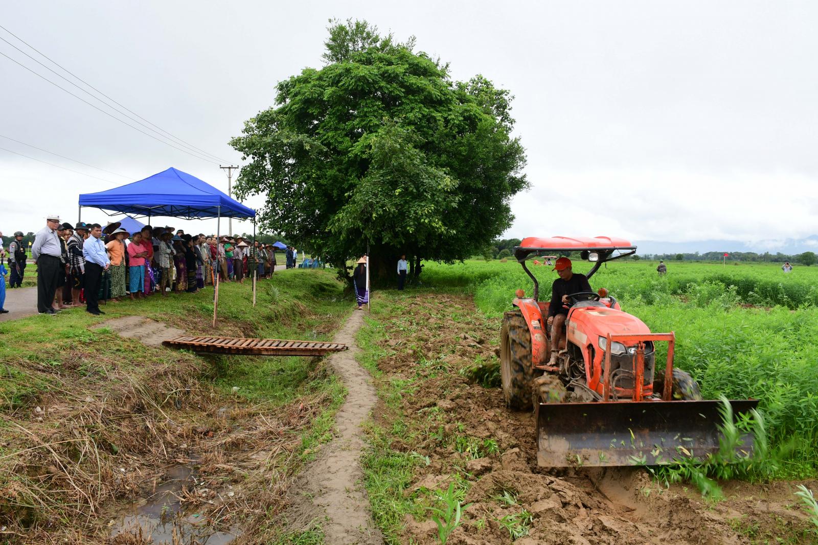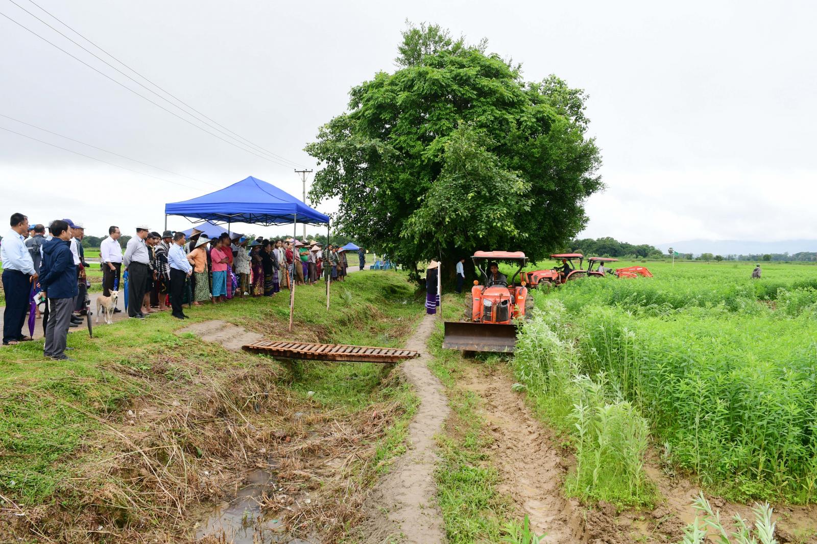 ဦးစွာ ဘားအံမြို့နယ်၊ ဝင်းကျန်ကျေးရွာ၊ ကွင်းအမှတ်-၁၂၁၅/က တောင်သူဦးမောင်လင်းအောင်၏ ပိုက်ဆံလျှော်စိုက်ခင်းအတွင်း၌ ကရင်ပြည်နယ်စိုက်ပျိုးရေးဦးစီးဌာန၊ သစ်စိမ်းမြေဩဖာ (ပိုက်ဆံလျှော်)ထယ်ထိုး မြေမြှုပ်ခြင်း ကွင်းသရုပ်ပြပွဲကိုကျင်းပရာ ပြည်နယ်ဝန်ကြီးချုပ်နှင့် အစိုးရအဖွဲ့ဝင်များ၊ ဝင်းကျန်၊ ဖာလင်-၁၊ ဖာလင်-၂ ကျေးရွာများမှ တောင်သူများက အမှတ်(၂၀) စက်မှုလယ်ယာစခန်း(ဘားအံ)၏ Kubota 50 ထွန်စက်ကြီးများဖြင့် သစ်စိမ်းမြေဩဇာ (ပိုက်ဆံလျှော်)ပင်များအား ထယ်ထိုးမြေမြှုပ်ခြင်းကို ကြည့်ရှုအားပေးခဲ့ကြပြီး ပြည်နယ်စိုက်ပျိုးရေး ဦးစီးဌာနမှတာဝန်ရှိသူများက သစ်စိမ်းမြေဩဇာ(ပိုက်ဆံလျှော်) စိုက်ပျိုးထယ်ထိုးမြေမြုပ်ခြင်း အားဖြင့်ရရှိလာမည့် အကျိုးကျေးဇူးများကို ရှင်းလင်းပြောကြားခဲ့သည်။
