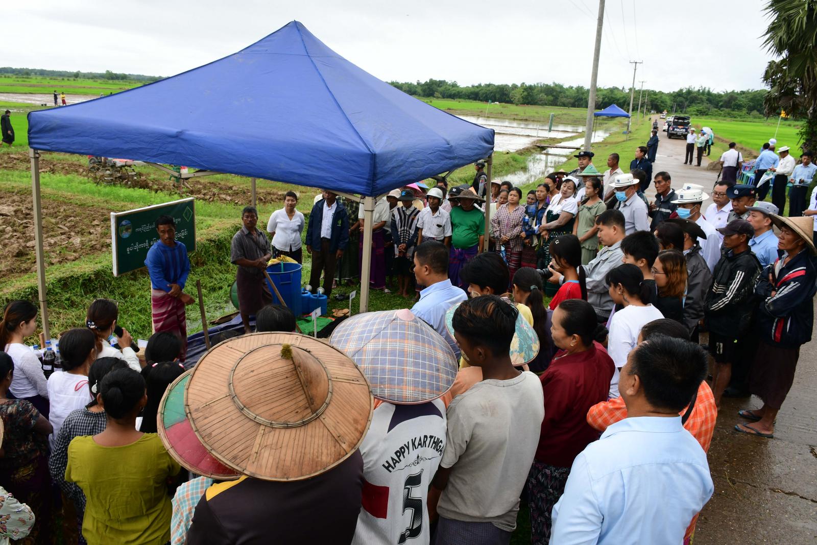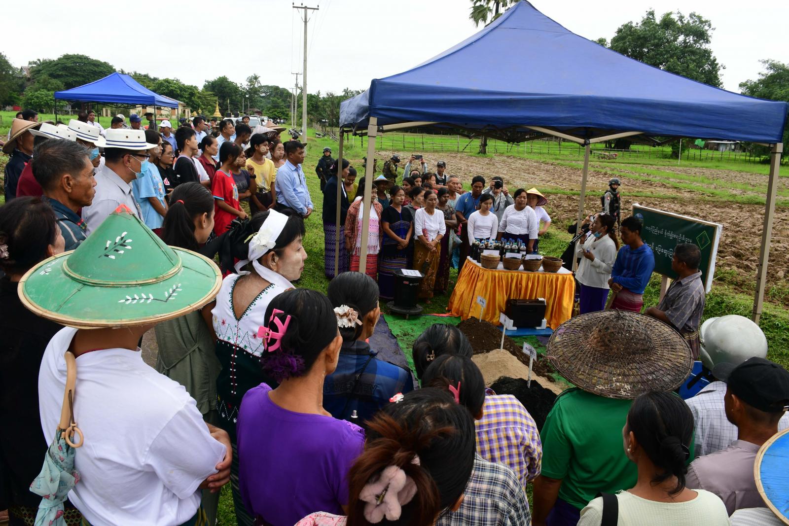 ထို့နောက် ပြည်နယ်စိုက်ပျိုးရေးဦးစီးဌာန မြေအသုံးချရေးဌာနခွဲမှ ဓာတ်မြေဩဇာအသုံးပြုမှုကို လျှော့ချ၍ ဈေးနှုန်းသက်သာပြီး ရေရှည်တွင်မြေဆီဩဇာကောင်းမွန်စေသော သဘာဝမြေဩဇာများ ကို တောင်သူများတွင်တွင် ကျယ်ကျယ် အစားထိုးအသုံးပြုလာစေရန် စူပါဘိုကာရှီမြေဆွေးပြုလုပ် သုံးစွဲနည်းကို လက်တွေ့ပြုလုပ်ပြသရာ ပြည်နယ်ဝန်ကြီးချုပ်နှင့်တာဝန်ရှိသူများ တက်ရောက်ကြည့်ရှုအားပေးခဲ့ကြပြီး တက်ရောက်လာသောတောင်သူများ၏ မေးမြန်းဆွေးနွေးမှုများကို ပြန်လည်ရှင်းလင်းဖြေကြား၍ တောင်သူများကိုယ်တိုင် ပြန်လည်ပြုလုပ်သုံးစွဲကြရန် တိုက်တွန်းပြောကြားခဲ့သည်။