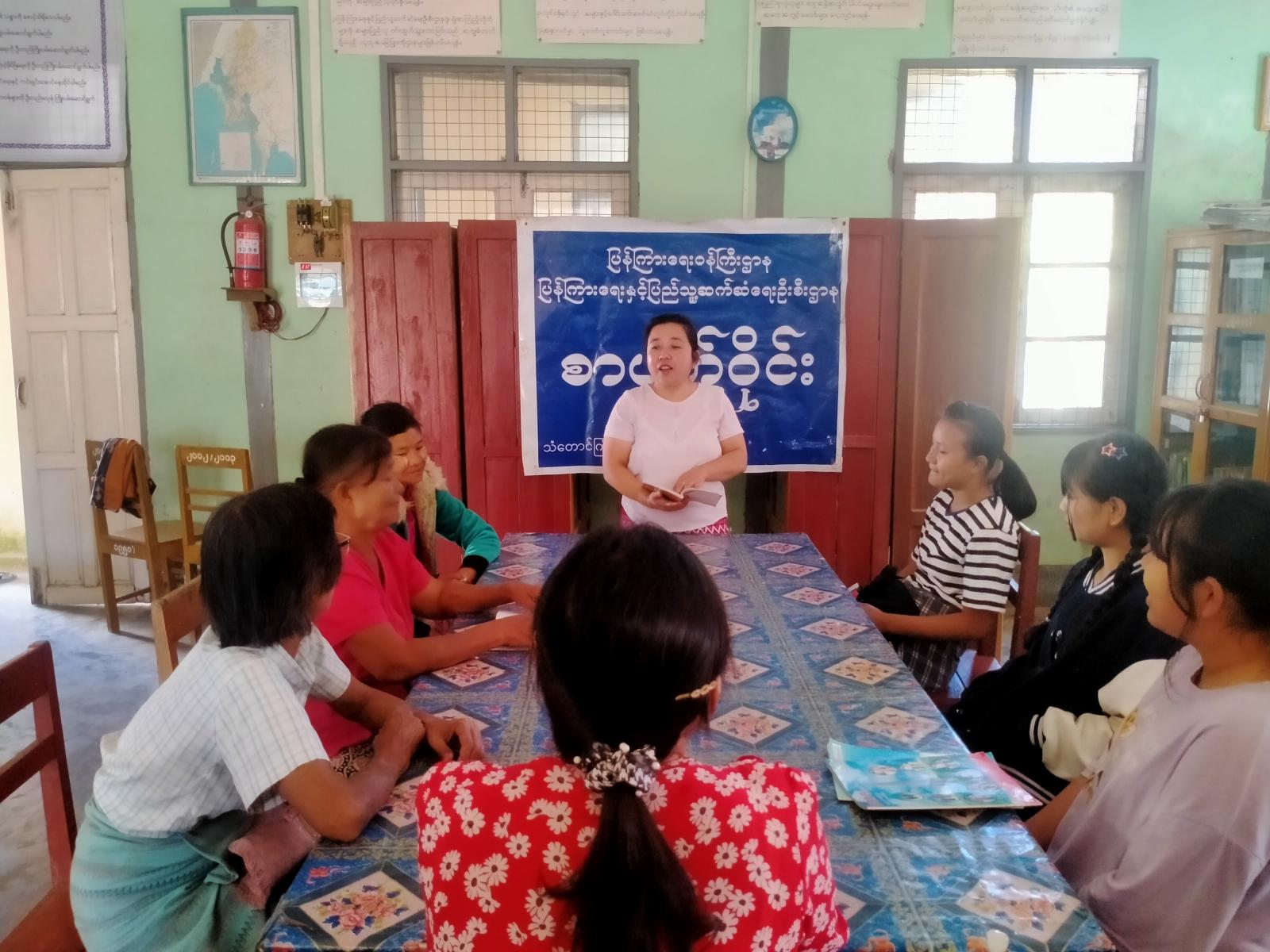 ကရင်ပြည်နယ်၊ သံတောင်ကြီးမြို့နယ်တွင် စာဖတ်ခြင်းအကျိုးကျေးဇူးသိစေရှိစေရန်၊ လူငယ်လူရွယ်များ အကောင်းအဆိုးအမှားအမှန်ကို ဝေဖန်ပိုင်းခြားနိုင်ရန် ရည်ရွယ်၍ Book Club/ Youth Club အဖွဲ့ဝင်များက စာရေးဆရာခင်စောတင့်၏ စွန့်စားမှုဆီသို့ခြေတစ်လှမ်းစာအုပ်အား ယမန်နေ့နေ့လယ်(၂) နာရီအချိန်က သံတောင်ကြီးမြို့နယ်ပြည်သူ့စာကြည့်တိုက် Community Centre ခန်းမ၌စာဖတ်ဝိုင်း ဆောင်ရွက်ခဲ့ကြောင်း သိရသည်။