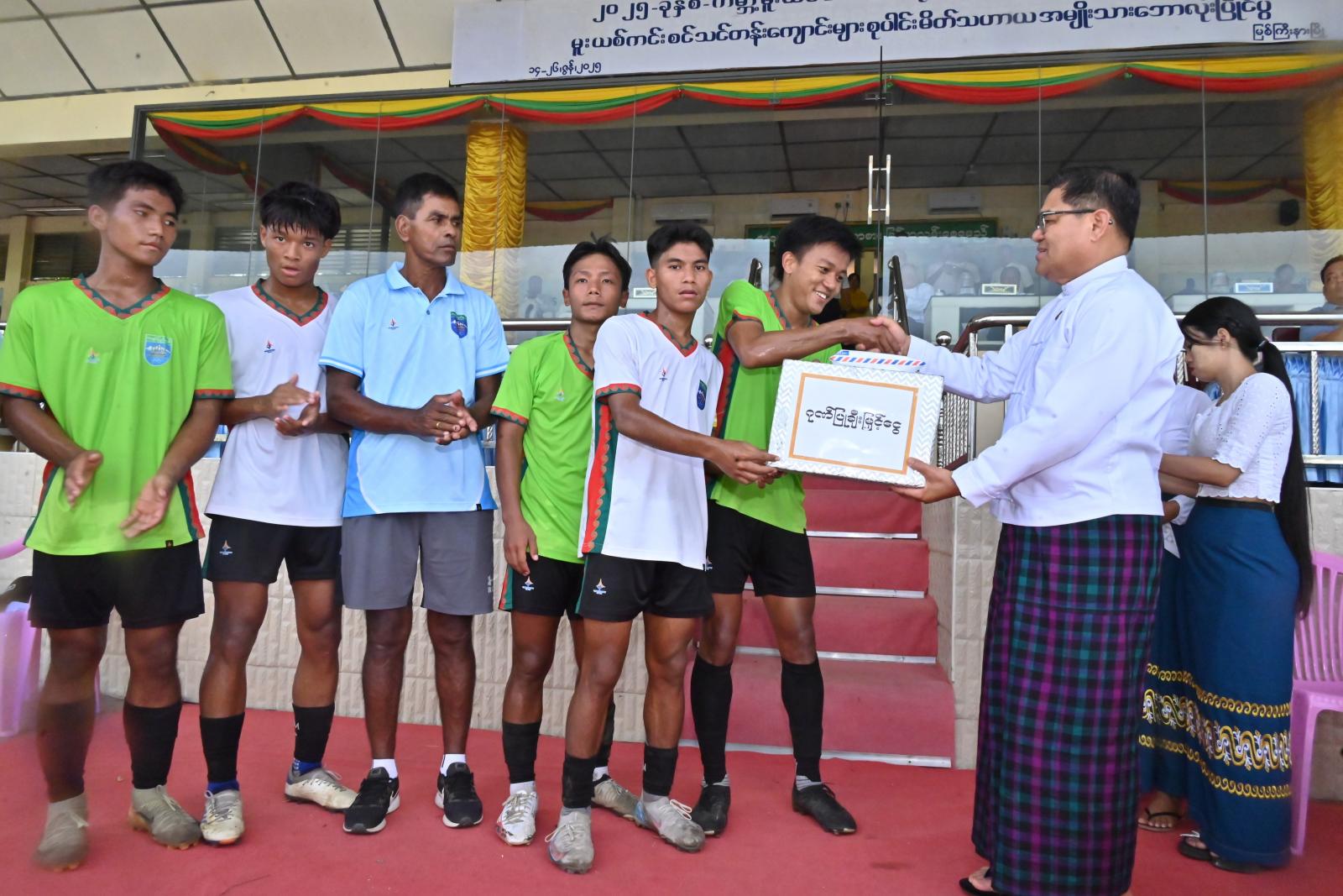 ထို့နောက် ပြည်နယ်ဝန်ကြီးချုပ်တို့က ဘောလုံးအားကစားသမားများအား အာဟာရထောက်ပံ့စာရိတ်အဖြစ် ချီးမြှင့်ငွေကျပ်(၂၅)သိန်းနှင့် နည်းပြများအတွက် ချီးမြှင့်ငွေများကို အသီးသီးပေးအပ် ချီးမြှင့်ခဲ့ကြကြောင်း သိရသည်။