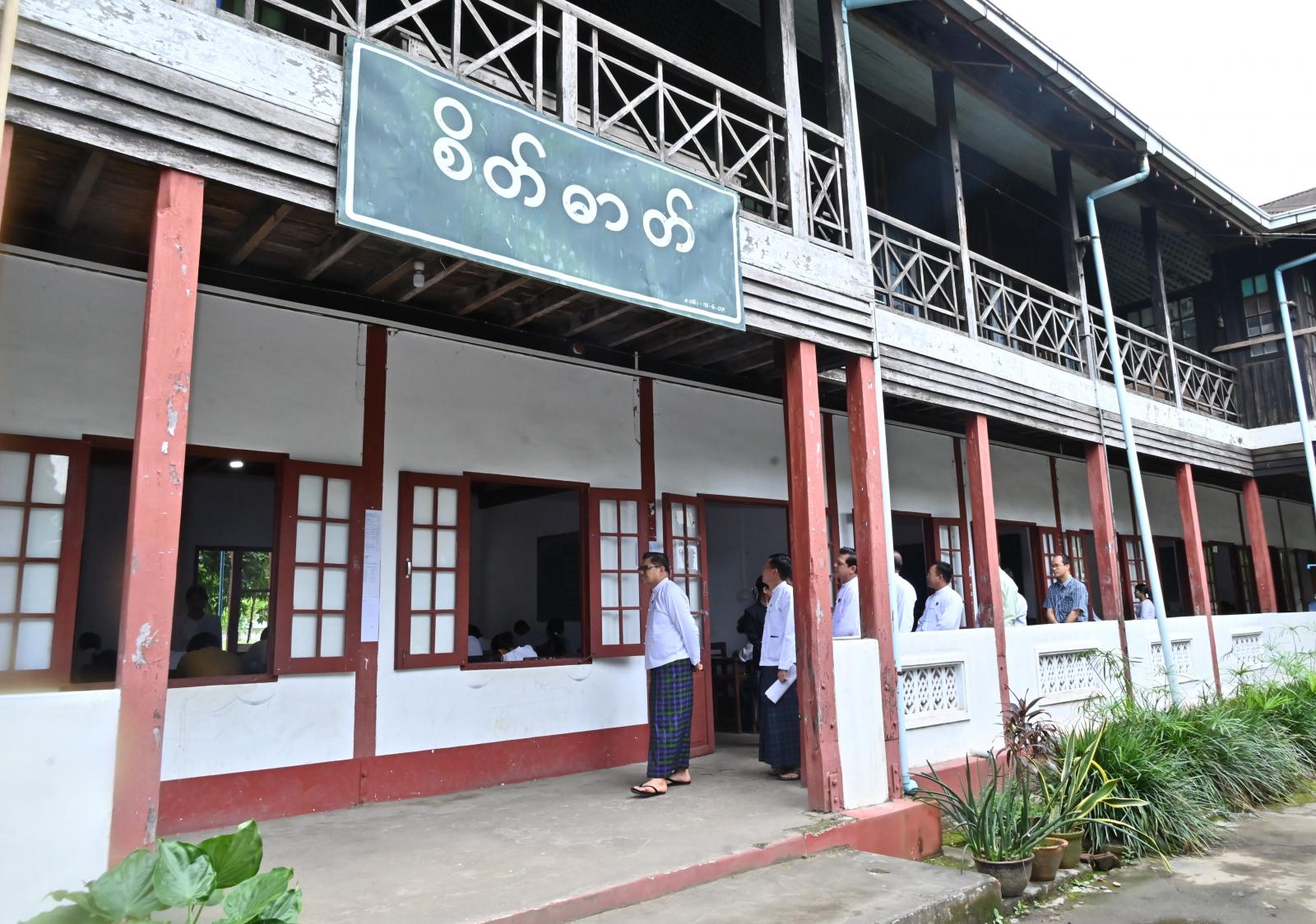 ထို့အတူ မွန်းလွဲပိုင်းတွင်လည်း ပြည်နယ်ဝန်ကြီးချုပ်နှင့် ဇနီး၊ တာဝန်ရှိသူများသည် အဆိုပါစာစစ်ဌာန၌ စာမေးပွဲဖြေဆိုပြီး ပြန်လည်ထွက်ခွာလာသော ကျောင်းသား/ ကျောင်းသူများအား ရင်းရင်းနှီးနှီး နှုတ်ဆက်အားပေးခဲ့ကြပြီး အာဟာရဖြစ်မုန့်နှင့် အချိုရည်ဘူးများကို ဝေငှကျွေးမွေးခဲ့ကြကာ ကျောင်းသား/ကျောင်းသူများနှင့် ကျောင်းသားမိဘများအား နှုတ်ဆက်အားပေးခဲ့သည်။