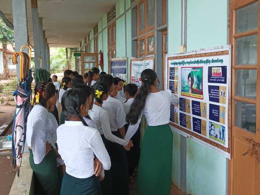 အဆိုပါအသိပညာပေးလုပ်ငန်းတွင် ပြန်ကြားရေးနှင့်ပြည်သူ့ဆက်ဆံရေးဦးစီးဌာနမှ ကျောင်းသူ၊ ကျောင်းသားများ ဖတ်ရှုလေ့လာနိုင်ရန် ကလေးကဗျာများ၊ ရုပ်ပြပုံပြင်များ၊ စာစောင်များ စသည့်ကလေးများ အသိပညာတိုးပွားရေး စာအုပ်စာပေများနှင့်၊ စာဖတ်ရှိန်မြှင့်တင်ရေး၊ မူးယစ်ဆေးဝါးအန္တရာယ်သတိပြုကာကွယ်ရေး စသည့်အသိပညာပေး နံရံကပ်စာစောင်များတို့ကို ခင်းကျင်းပြသရာ ကျောင်းသား၊ ကျောင်းသူများမှ စိတ်ပါ၀င်စားစွာ ကြည့်ရှုလေ့လာခဲ့ကြောင်း သိရသည်။