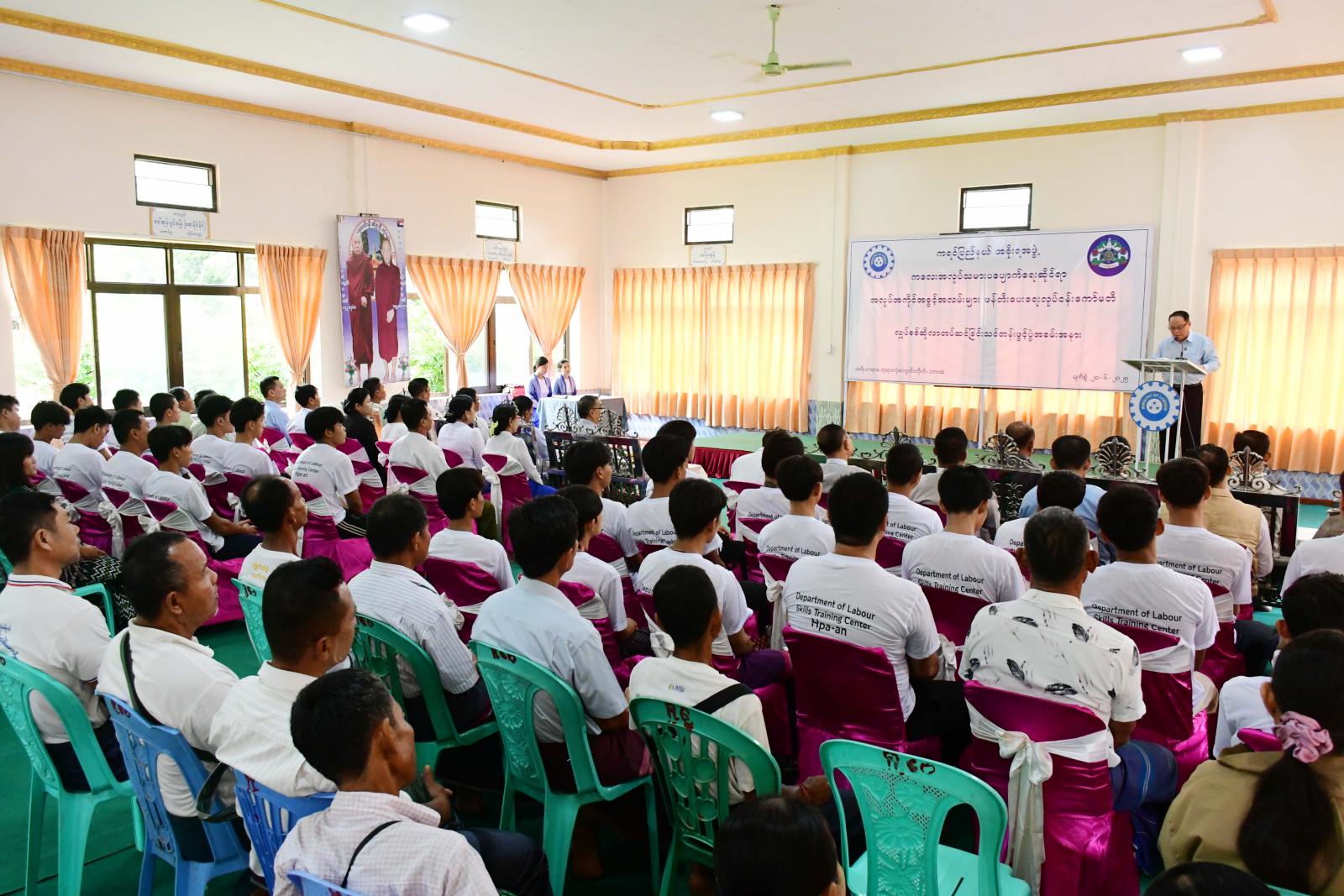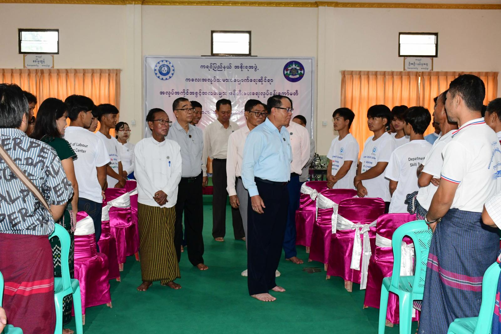 ထို့နောက် ပြည်နယ်အလုပ်သမားညွှန်ကြားရေးဦးစီးဌာန ပြည်နယ်ဦးစီးမှူးက သင်တန်းဖွင့်လှစ်ရခြင်း၏ ရည်ရွယ်ချက်နှင့်ဖွင့်လှစ်ခဲ့သောသင်တန်းများမှ ဆောင်ရွက်ချက်များကို ရှင်းလင်းတင်ပြပြီး စုပေါင်းမှတ်တမ်းဓာတ်ပုံများရိုက်ကူးကြကာ ပြည်နယ်ဝန်ကြီးချုပ်နှင့် တာဝန်ရှိသူများသည် သင်တန်းသားများအားရင်းနှီးနွေးထွေးစွာတွေ့ဆုံနှုတ်ဆက်၍ အားပေးစကားများပြောကြားခဲ့သည်။