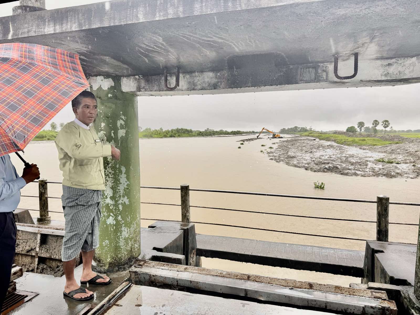ထိုသို့စစ်ဆေးရာတွင် ရင်းငြိမ်ရေထိန်းတံခါးနှင့် သက်ဆိုင်သည့် လယ်မြေများကို မိုးစပါးစိုက်ချိန်တွင် ရေကြီးနစ်မြုပ်မှုမှကာကွယ်ရန်၊ နွေစပါးစိုက်ချိန်တွင် ပင်လယ်ရေငန် ဝင်ရောက်မှုမရှိစေရေးနှင့် ရေချိုသိုလှောင်ထိန်းသိမ်းထားမှုရှိစေရန်အတွက် ရင်းငြိမ်ရေထိန်းတံခါး လုပ်ငန်းလည်ပတ်မှုကောင်းမွန်စေရေး၊ ပင်လယ်ရေငံဝင်ရောက်မှုမရှိစေရေး၊ နှုန်းတင်ကျန်မှုများ မရှိစေရေးနှင့် ရေစီးအားကောင်းမွန်စေရေး ဆောင်ရွက်ထားရှိမှုများကို သွားရောက်ကြည့်ရှုခဲ့ကြသည်။