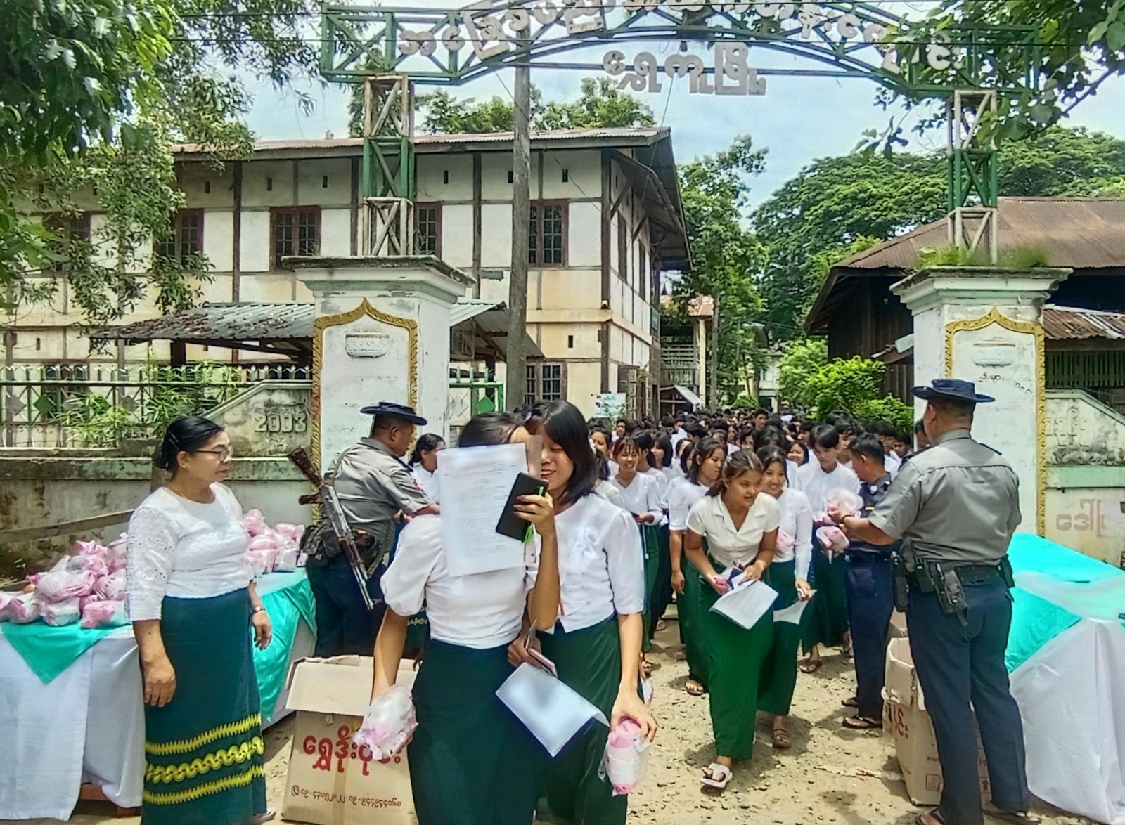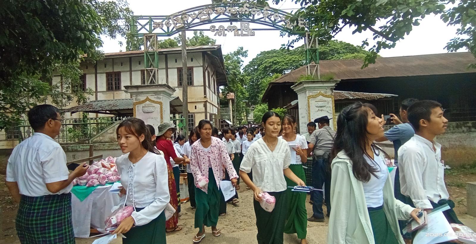 အဆိုပါ တက္ကသိုလ်ဝင်စာမေးပွဲအား ကျောင်းသားကျောင်းသူ(၇၀၈)ဦး ဝင်ရောက်ဖြေဆို လျက်ရှိပြီး စာမေးပွဲဖြေဆိုနေကြသည့် ကျောင်းသား၊ကျောင်းသူများ၏ စာမေးပွဲဆိုင်ရာလုပ်ငန်းများကို လုပ်ထုံးလုပ်နည်းများနှင့်အညီ ခရိုင်ပညာရေးမှူး ဦးအောင်ဆွေ၊ မြို့နယ်ပညာရေးမှူး ဒေါ်မြတ်နွယ်တို့က အနီးကပ်ကြီးကြပ်ဆောင်ရွက်ပေးလျက်ရှိသည်။