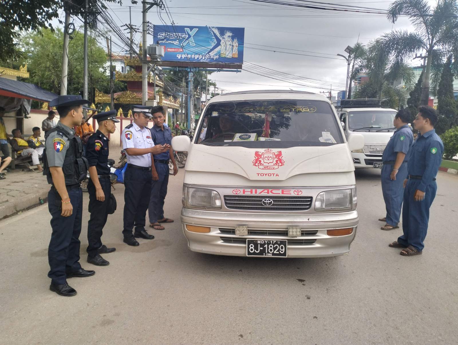 ကရင်ပြည်နယ်၊ မြဝတီမြို့နယ်အတွင်း လမ်းအသုံးပြုသူ မော်တော်ယာဉ်/ မော်တော်ဆိုင်ကယ်များအား မော်တော်ယာဉ် နည်းဥပဒေ/ ဥပဒေပါ သတ်မှတ်ပြဋ္ဌာန်းချက်များအတိုင်း တိကျစွာ လိုက်နာမှုရှိစေရေး အသိပညာပေး စစ်ဆေးဆောင်ရွက်ခြင်းကို ဇွန်လ ၁၉ရက်နေ့ ညနေ ၃ နာရီက မြဝတီမြို့၊ အမှတ်(၄) ရပ်ကွက်၊ ဘုရားကြီးဝန်းနှင့် အမှတ်(၅)ရပ်ကွက်၊ ရေပူမီးပွိုင့် လမ်းဆုံတို့၌ ဆောင်ရွက်သည်။
