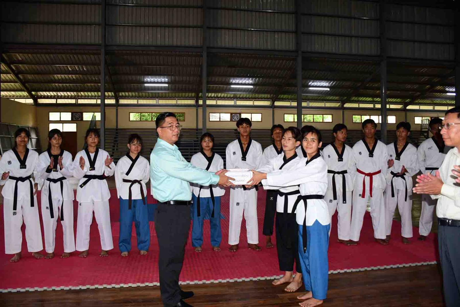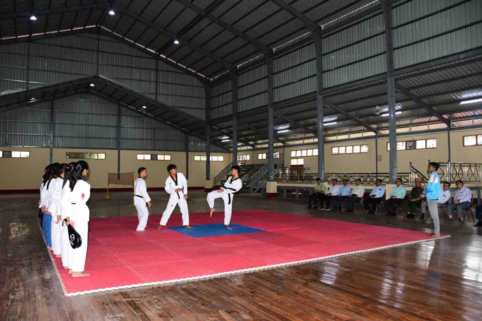 ထို့နောက် ပြည်နယ်ဝန်ကြီးချုပ်နှင့် တာဝန်ရှိသူများသည် ပြည်နယ်အားကစားရုံအမှတ်(၂)၌ အသက် (၂၅)နှစ်အောက် တိုင်းဒေသကြီးနှင့် ပြည်နယ်အဆင့် တိုက်ကွမ်ဒိုပြိုင်ပွဲသို့ ဝင်ရောက်ယှဉ်ပြိုင်ကြမည့် ကယားပြည်နယ်လက်ရွေးစင် တိုက်ကွမ်ဒိုအားကစားသမားများ၏ သရုပ်ပြလေ့ကျင့်နေမှုများကို ကြည့်ရှု၍ ပြည်နယ်ဝန်ကြီးချုပ်က အားကစားသမားများနှင့် နည်းပြများအတွက် ဂုဏ်ပြုချီးမြှင့်ငွေများပေးအပ်ခဲ့ပြီး ပြည်နယ်ဂုဏ်ဆောင် အားကစားသမားများဖြစ်အောင် အစွမ်းကုန်ကြိုးပမ်းဆောင်ရွက်ကြရန် အားပေးစကားများ ပြောကြားခဲ့ကြောင်းသိရသည်။