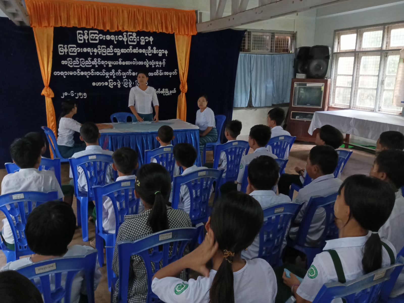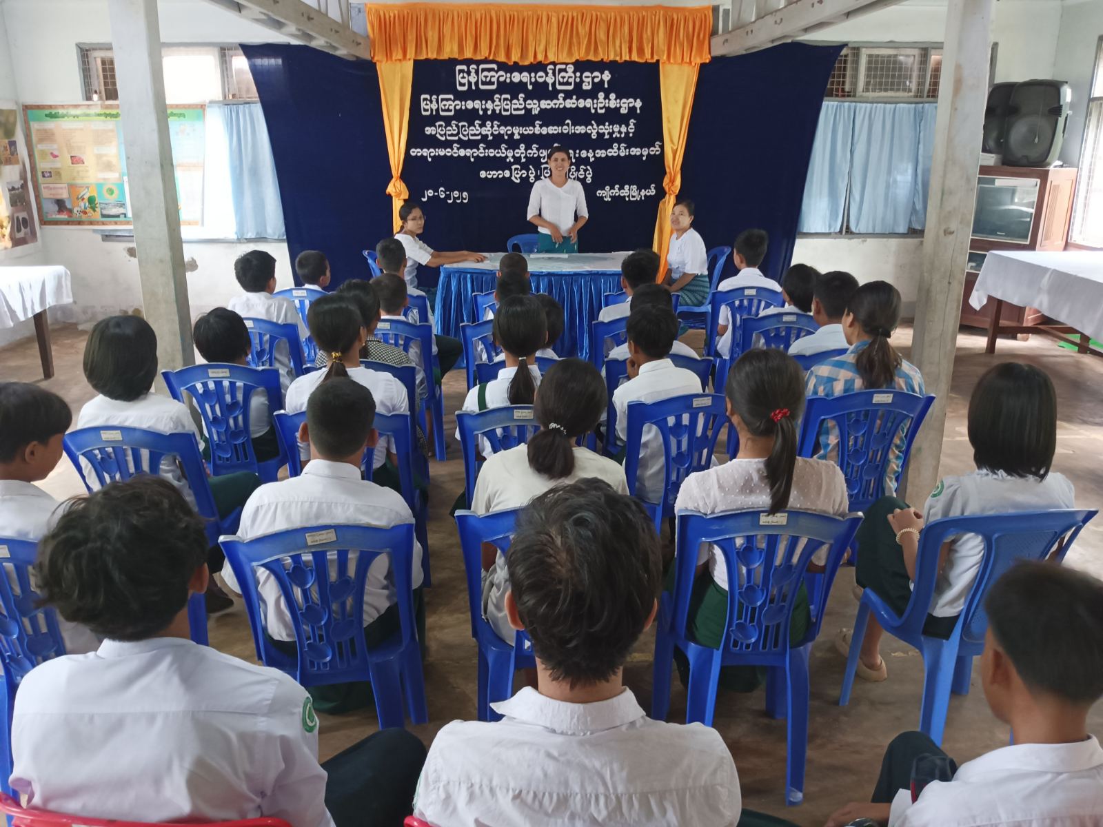 ရှေးဦးစွာ ပြန်ကြားရေးနှင့်ပြည်သူ့ဆက်ဆံရေးဦးစီးဌာန ဦးစီးအရာရှိ ဒေါ်သန်းသန်းမော်က ကျောင်းသား၊ ကျောင်းသူများအား မူးယစ်ဆေးဝါး၏ အန္တရာယ်နှင့် ဆိုးကျိုးများအကြောင်း သိကောင်းစရာများနှင့် အားလပ်ချိန်တွင် ကျောင်းစာသာမက ပြင်ပစာပေများကို လေ့လာဖတ်ရှုကြရေးတို့ကို ဆွေးနွေးပြောကြားပြီး စွမ်းရည်ပြိုင်ပွဲများ ပြုလုပ်ကာ လက်ဆောင်ပစ္စည်းများ ပေးအပ်ခဲ့သည်။