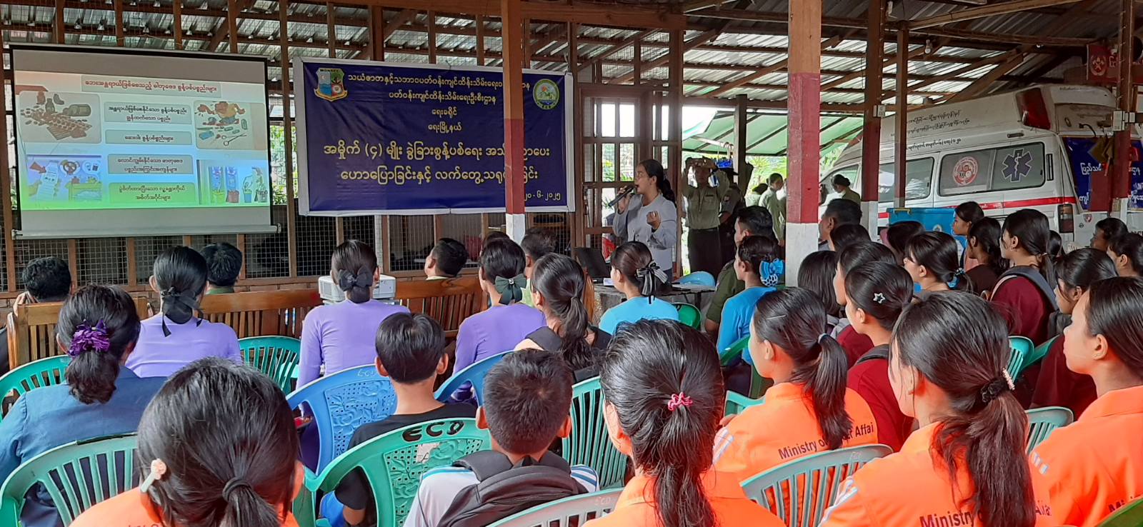 ထို့နောက် အမှိုက်အမျိုးအစား(၄)မျိုးခွဲခြားခြင်း၊ ခွဲခြားစွန့်ပစ်ရမည့်အမှိုက်များအားသတ်မှတ်အရောင် အမှိုက်ပုံးအတွင်းစနစ်တကျစွန့်ပစ်ရေးလက်တွေ့သရုပ်ပြခြင်းဆောင်ရွက်ပေးပြီး “စနစ်တကျ အမှိုက်ခွဲခြား စွန့်ပစ်ရေး” အသိပညာပေးလက်ကမ်းစာစောင် ဖြန့်ဝေပေးခဲ့ကြောင်း သိရသည်။