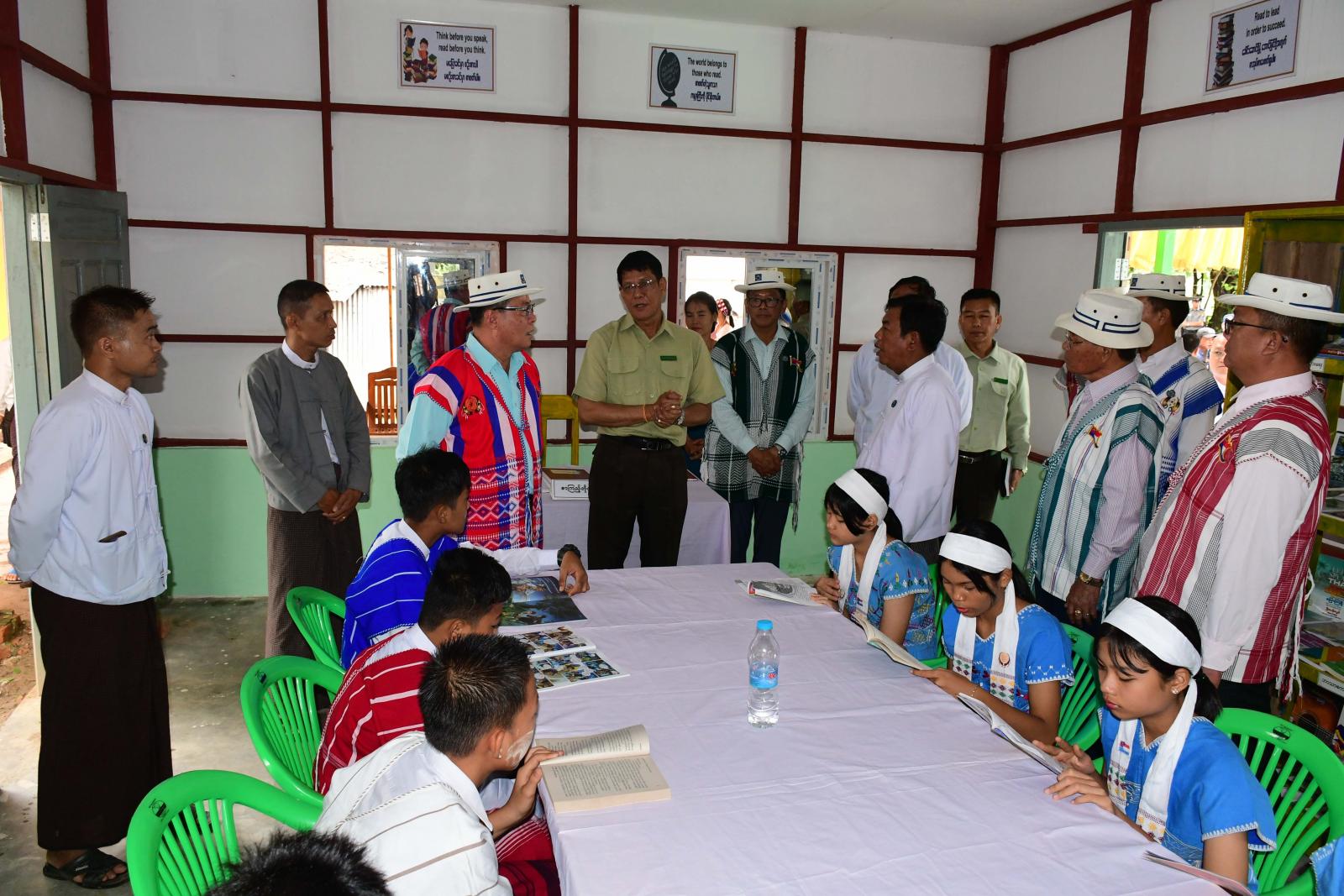 ထို့နောက် ပြည်နယ်ဝန်ကြီးချုပ်နှင့် တက်ရောက်လာသူများက စာကြည့်တိုက်ဖွင့်ပွဲ အထိမ်းအမှတ်ကမ္ပည်းမော်ကွန်အား အမွှေးနံ့သာရည်များပက်ဖျန်းပေးကြပြီး စာကြည့်တိုက်အတွင်း ပညာရပ်အလိုက်စာအုပ်စာစောင်များခင်းကျင်းထားရှိမှုနှင့်ဒေသခံများလာရောက် စာပေလေ့လာဖတ်ရှုနေမှုအခြေအနေများကို လှည့်လည်ကြည့်ရှုအားပေးကာ တာဝန်ရှိသူများအား လိုအပ်သည်များမှာကြားခဲ့သည်။