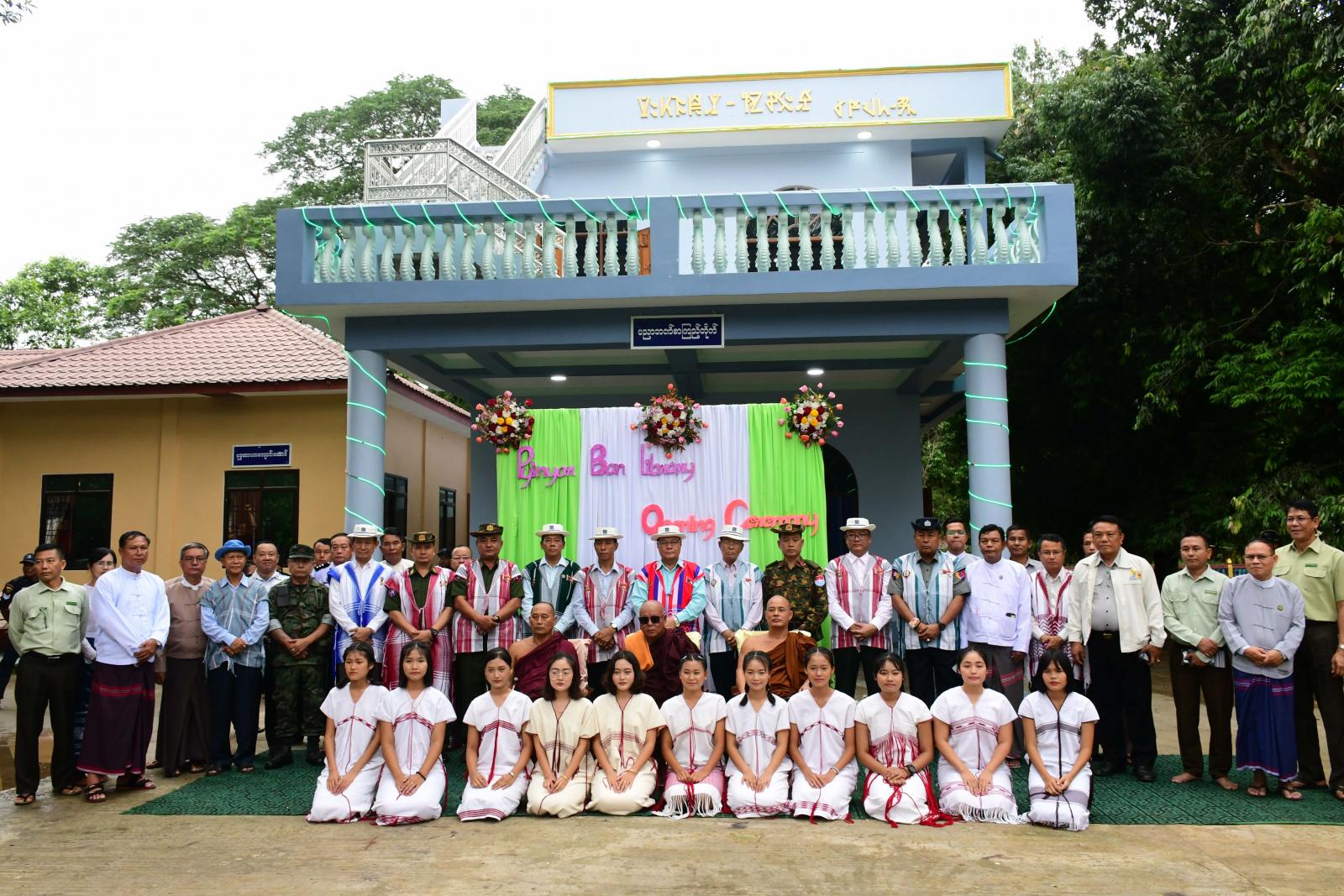 ယင်းနောက်ပြည်နယ်ဝန်ကြီးချုပ်နှင့်ဧည့်ပရိတ်သတ်အပေါင်းတို့သည် မြိုင်ကြီးငူနန်းဦးဘေးမဲ့တောရကျောင်းဦးစီးပဓာနနာယက ဒုတိယမြိုင်ကြီးငူဆရာတော် အဂ္ဂမဟာမင်္ဂလဓမ္မဇောတိကဓဇ သီရိပျံချီ ဘဒ္ဒန္တဉာဏိကထံမှ ငါးပါးသီလ ခံယူဆောက်တည်ကြပြီး ဆရာတော်၊ သံဃာတော်များ ရွတ်ဖတ်သရဇ္ဈာယ်တော်မူသော မေတ္တာသုတ်ပရိတ်တရားတော်များကို နာယူကြည်ညိုကြကာ မဟာမင်္ဂလဓမ္မဇောတိကဓဇဘဒ္ဒန္တသီရိဓမ္မထံမှ ဩဝါဒကထာကို နာယူကြည်ညိုကြသည်။