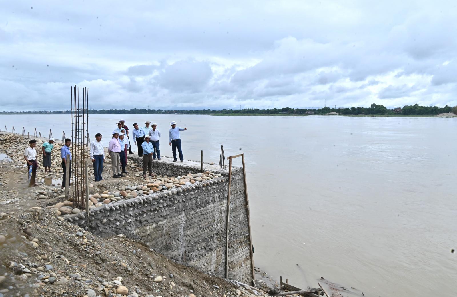 ထိုသို့ကွင်းဆင်းစစ်ဆေးရာတွင် ပြည်နယ်ဝန်ကြီးချုပ်သည် ပြည်နယ်အစိုးရအဖွဲ့ဝင် ဝန်ကြီးများဖြစ်ကြသည့် သယံဇာတရေးရာဝန်ကြီး ဦးတိန့်ဆောင်၊ လူမှုရေးရာဝန်ကြီး ဦးမိုးမင်းသိန်း၊ ဌာနဆိုင်ရာတာဝန်ရှိသူများနှင့်အတူ ပြည်နယ်အတွင်း မြစ်ရေကြီးမြင့်မှုကြောင့် ဟိုးလော် ကျေးရွာနှင့် ရဝမ်ကထောင်ကျေးရွာတို့တွင် ၂၀၂၄ ခုနှစ်၊ မြစ်ရေကြီးမြှင့်မှုကြောင့် ကမ်းပါးရေတိုက်စားခဲ့ပြီး လူနေအိမ် (၄)လုံးနှင့် စေတီတစ်ဆူ ပြိုကျပျက်ဆီးခဲ့သဖြင့် ကချင်ပြည်နယ်အစိုးရအဖွဲ့ အနေဖြင့် ကမ်းပါးရေတိုက်စားမှုမှ ကာကွယ်နိုင်ရေးအတွက် အောက်ခြေဖောင်ဒေးရှင်း ကမ်းပါး ထိန်းကျောက်စီမြေထိန်းနံရံအရှည် ၃၀၀၀ ပေနှင့် Geo Bag ချခြင်းတို့ကို တည်ဆောက်ထားခဲ့ရာ ယခုနှစ်အတွင်း မေလလကုန်ပိုင်းနှင့် ဇွန်လပထမအပတ်အတွင်း မြစ်ရေကြီးမြင့်မှုကြောင့် ကမ်းပါးအနည်းငယ် ထပ်မံတိုက်စားခံရမှု အခြေအနေများကို လှည့်လည်ကွင်းဆင်းစစ်ဆေးခဲ့ကြပြီး ပြည်နယ်ဝန်ကြီးချုပ်က ကျောက်စီရေထိန်းတမံတည်ဆောက်နိုင်ရေး ဘဏ္ဍာငွေလျာထားပြီး ဖြစ်သော်လည်း ပွင့်လင်းရာသီမှသာ လုပ်ထုံးလုပ်နည်းနှင့်အညီ တည်ဆောက်ရမည်ဖြစ်သဖြင့် ယခုနှစ်မိုးရာသီတွင် ရေထပ်မံကြီးမြင့်လာပါက ကြိုတင်ကာကွယ်နိုင်ရေးအတွက် ကမ်းခြေ တစ်လျှောက် ဝါးဂရစ်ရေထိန်းနံရံ အမြန်ဆုံးတည်ဆောက်၍ ကာကွယ်ထားနိုင်ရေး ဌာနဆိုင်ရာ တာဝန်ရှိသူများနှင့် ညှိနှိုင်းပေါင်းစပ်ဆောင်ရွက်ပေးခဲ့သည်။