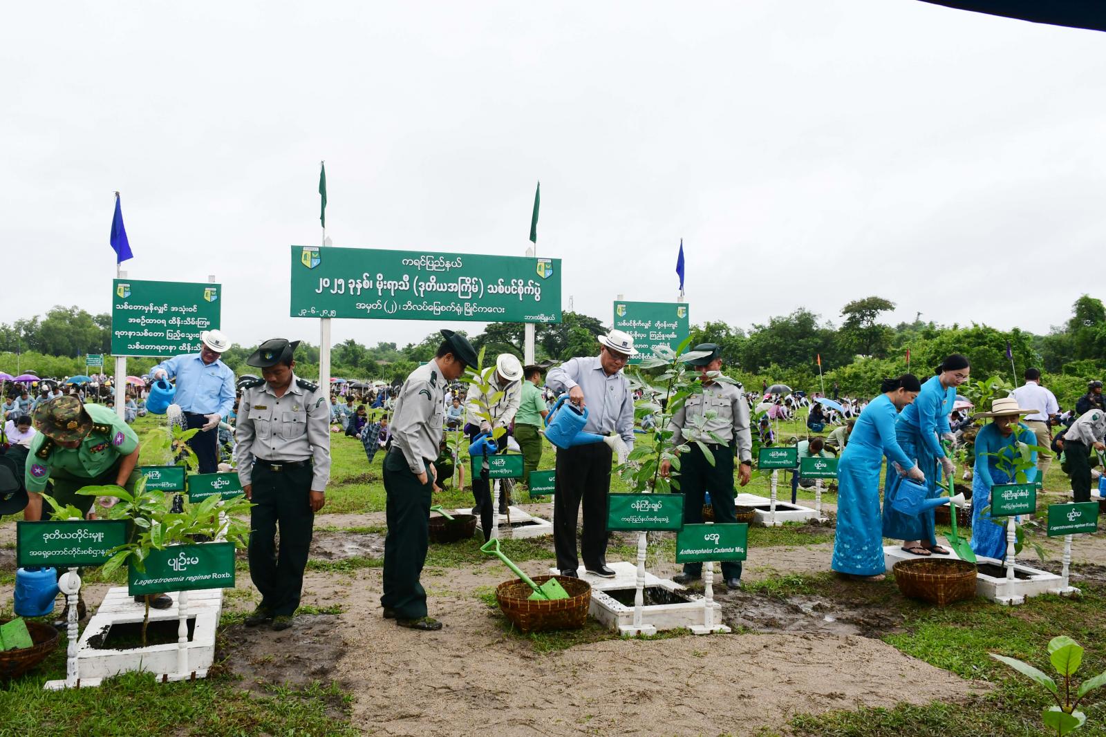 ဦးစွာ ကရင်ပြည်နယ်ပြည်နယ်ဝန်ကြီးချုပ်ဦးစောမြင့်ဦးက သစ်ပင်များစိုက်ပျိုးပြုစု ထိန်းသိမ်းခြင်း အားဖြင့် နောင်လာနောက်သားများအတွက် အဖိုးထိုက်တန်လှသည့် သဘာဝ အမွေအနှစ်များကို လက်ဆင့်ကမ်းပေးအပ်ကြရန် တိုက်တွန်းပြောကြားပြီး အမှတ်(၂) ဘိလပ်မြေ စက်ရုံ တန်(၄၀၀၀) စက်ရုံမှူးကြီးထံ ပျိုးပင်များ ဖြန့်ဝေပေးအပ်ကာ တက်ရောက်လာသော အရှေ့တောင်တိုင်း စစ်ဌာနချုပ်ဒုတိယတိုင်းမှူး၊ ပြည်နယ်တရားလွှတ်တော် တရားသူကြီးချုပ်၊ ပြည်နယ်အစိုးရအဖွဲ့ဝင် များ၊ ပြည်နယ်အဆင့်ဌာနဆိုင်ရာများ၊ အမှတ်(၁)နှင့်အမှတ်(၂)ဘိလပ်မြေ စက်ရုံမှ တာဝန်ရှိသူများ နှင့်ဝန်ထမ်းများ၊ ပြည်နယ်အမျိုးသမီးရေးရာအဖွဲ့နှင့်မိခင်နှင့်ကလေး စောင့်ရှောက်မှုကြီးကြပ်ရေး အဖွဲ့နာယကနှင့်အဖွဲ့ဝင်များ၊ လူမှုရေးအသင်းအဖွဲ့များ၊ ဒေသခံ ပြည်သူများနှင့်အတူ ရေ၊ မြေ၊ ဒေသနှင့် ကိုက်ညီသော သစ်မျိုးများဖြစ်သည့် မအူ ပင် ၆၀၀၊ ပျဉ်းမ ပင် ၆၀၀ စုစုပေါင်း အပင် ၁၂၀၀ ကို စုပေါင်းစိုက်ပျိုးကြသည်။