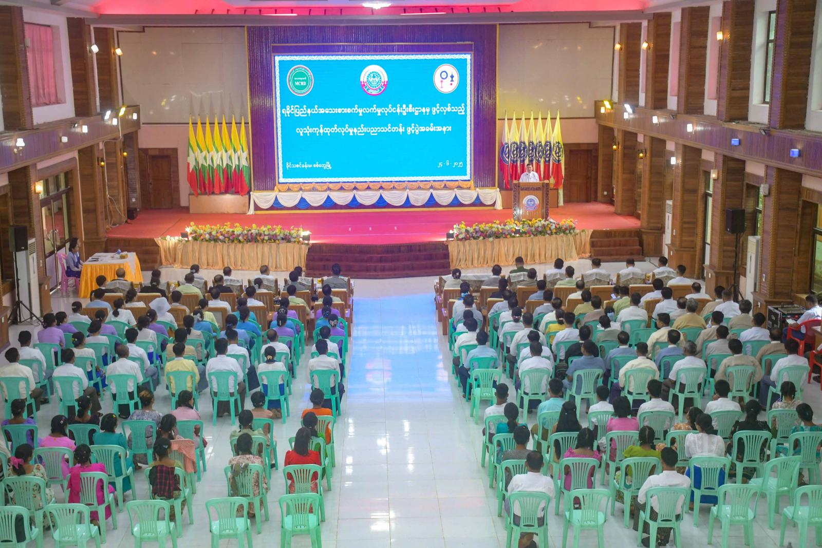 ရခိုင်ပြည်နယ် အသေးစားစက်မှုလက်မှုလုပ်ငန်းဦးစီးဌာနက ဖွင့်လှစ်သည့် လူသုံးကုန် ထုတ်လုပ်မှု နည်းပညာသင်တန်းဖွင့်ပွဲကို ယနေ့နံနက်ပိုင်းက စစ်တွေမြို့ ခိုင်သဇင်ခန်းမ၌ ကျင်းပရာ ရခိုင်ပြည်နယ်ဝန်ကြီးချုပ် ဦးထိန်လင်းနှင့် ပြည်နယ်တရားလွှတ်တော်တရားသူကြီးချုပ်၊ ပြည်နယ်အစိုးရအဖွဲ့ဝင်များ၊ ဌာနဆိုင်ရာများ၊ သင်တန်းနည်းပြများနှင့် သင်တန်းသား၊ သင်တန်းသူများ တက်ရောက်ကြသည်။