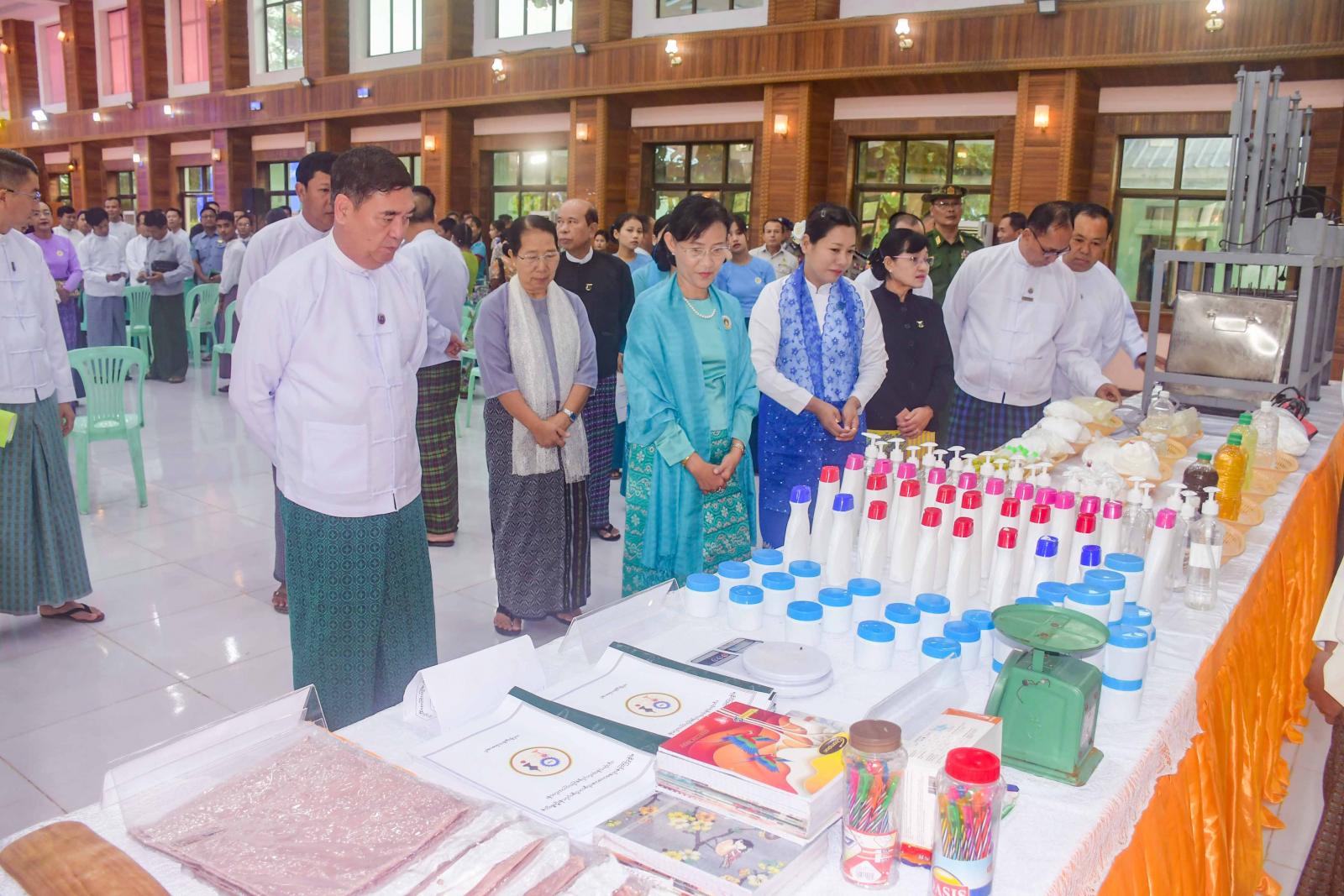 ထို့နောက် ပြည်နယ်လမ်းပန်းဆက်သွယ်ရေးဝန်ကြီးက သင်တန်းသုံးကုန်ကြမ်းပစ္စည်းများပေးအပ်ရာ သင်တန်းသူတစ်ဦးက လက်ခံယူသည်။ ယင်းနောက် ပြည်နယ်ဝန်ကြီးချုပ်နှင့် တာဝန်ရှိသူများသည် သင်တန်းသား၊ သင်တန်းသူများအား ရင်းရင်းနှီးနှီးတွေ့ဆုံနှုတ်ဆက်ကြပြီး ခန်းမအတွင်း လူသုံးကုန်ပစ္စည်းများနှင့် သင်ထောက်ကူပစ္စည်းများ ခင်းကျင်းပြသထားမှုကို လှည့်လည်ကြည့်ရှု အားပေးကြသည်။