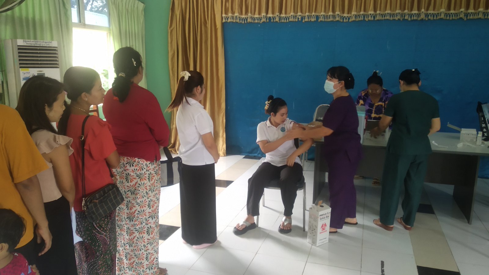 ကရင်ပြည်နယ်၊ မြဝတီမြို့အတွင်းရှိ ဌာနဆိုင်ရာဝန်ထမ်းများနှင့် ပြည်သူများအား ကိုဗစ်-၁၉ ရောဂါ ကြိုတင်ကာကွယ်နိုင်ရန် ကာကွယ်ဆေးများ အကြိမ်ပြည့်ထိုးနှံပေးခြင်းနှင့် ထပ်ဆောင်းကာကွယ်ဆေးများ ထိုးနှံပေးခြင်းကို ဆောင်ရွက်ပေးလျက်ရှိရာ ယနေ့နံနက် ၁၀ နာရီတွင် Pfizer COVID-19 ရောဂါကာကွယ်ဆေး ထိုးနှံပေးခြင်းကို မြဝတီခရိုင် ပြည်သူ့ဆေးရုံးကြီး၌ ဆောင်ရွက်သည်။