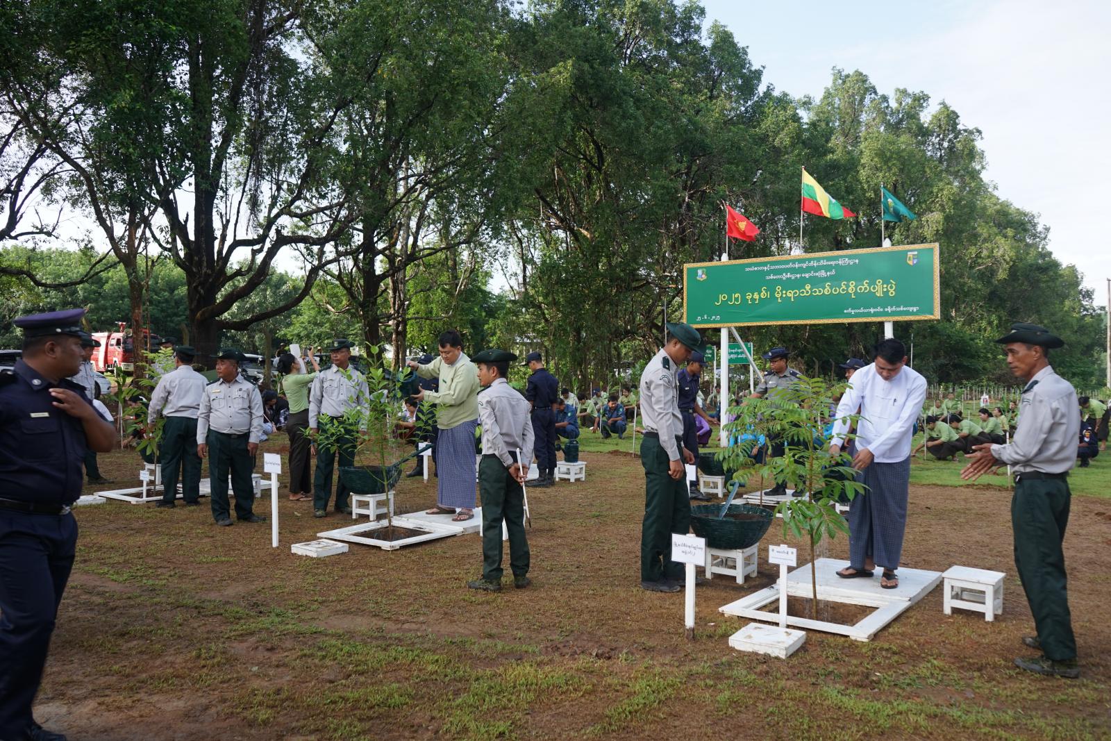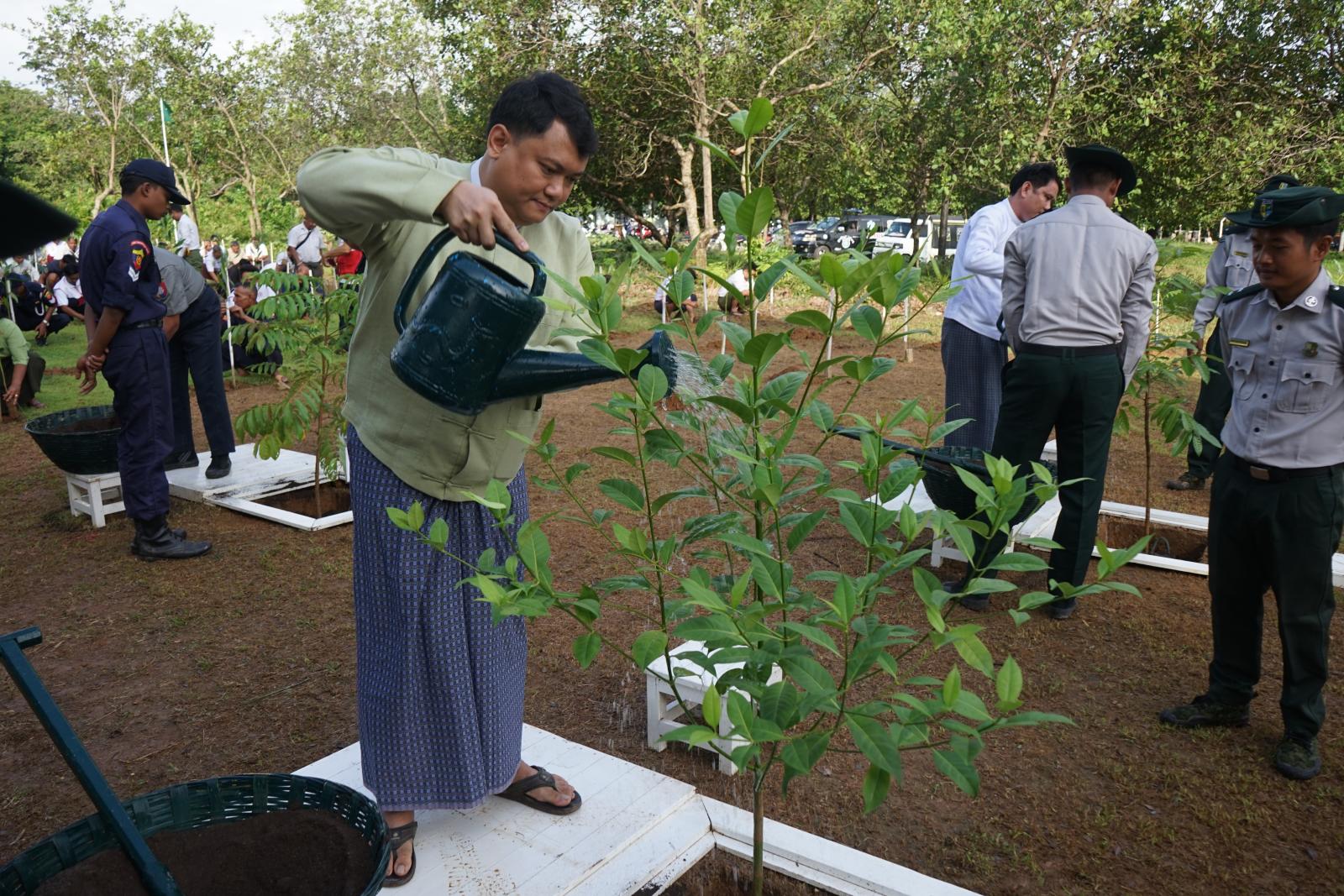 ဆက်လက်၍ မြို့နယ်စီမံအုပ်ချုပ်ရေးအဖွဲ့ ဥက္ကဋ္ဌနှင့် အဖွဲ့ဝင်များက လူထုဖြန့်ပျိုးပင်များအား တာဝန်ရှိသူများထံသို့ လွှဲပြောင်းပေးအပ်ခဲ့ကြပြီး တက်ရောက်လာကြသည့် မြို့နယ်အဆင့်ဌာနဆိုင်ရာ တာဝန်ရှိသူများ၊ ရပ်ကွက်ကျေးရွာအုပ်ချုပ်ရေးမှူးများ၊ အမျိုးသမီးရေးရာအဖွဲ့၊ မိခင်နှင့်ကလေးစောင့်ရှောက်ရေးအသင်း၊ ကြက်ခြေနီတပ်ဖွဲ့ဝင်များ၊ လူမှုရေးအသင်းအဖွဲ့များနှင့် ပြည်သူများမှ စုပေါင်းသစ်ပင်စိုက်ပျိုးခြင်း ဆောင်ရွက်ခဲ့ကြသည်။