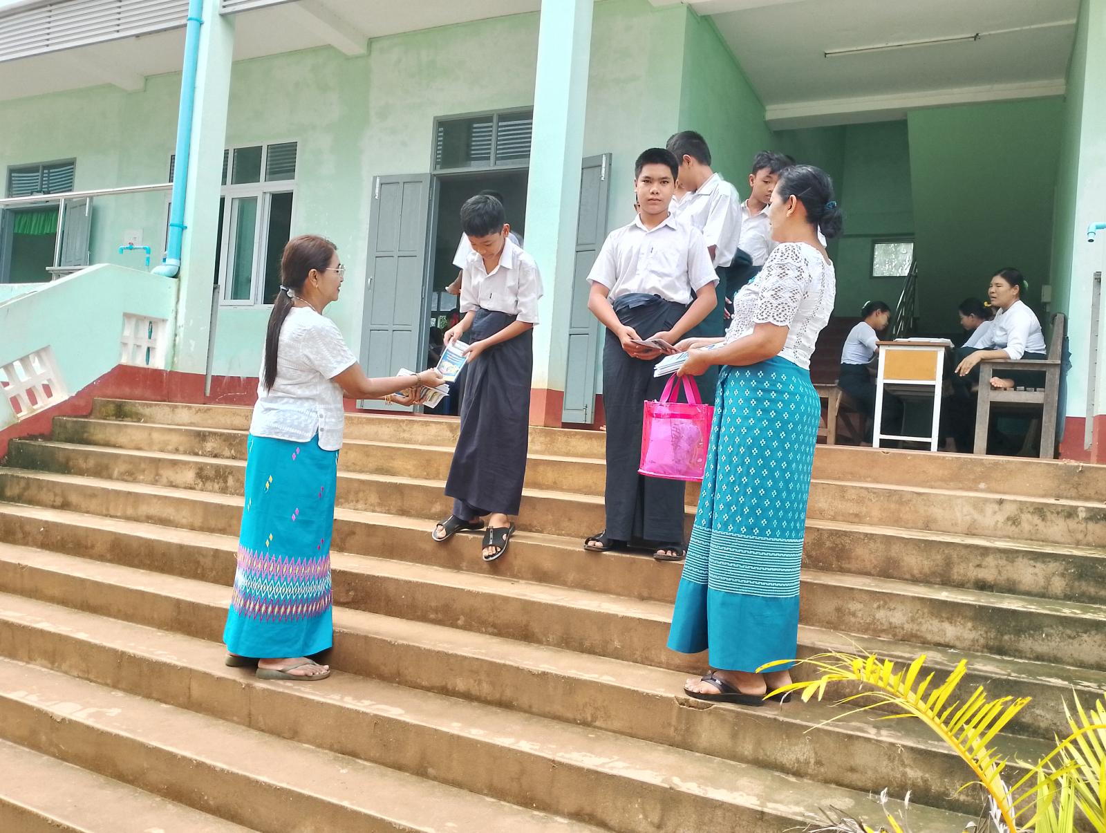 အဆိုပါ လက်ကမ်းစာစောင်ဖြန့်ဝေခြင်းများကို ဇွန်လ ၂၅ ရက်နေ့နံနက်ပိုင်းတွင် ကျိုက်မရောမြို့နယ် ပြန်ကြားရေးနှင့်ပြည်သူ့ဆက်ဆံရေးဦးစီးဌာန ဝန်ထမ်းများက အ.ထ.က(ခွဲ)ကျိုက်မရောကျောင်း၌လည်းကောင်း၊ ချောင်းဆုံမြို့နယ် ပြန်ကြားရေးနှင့်ပြည်သူ့ဆက်ဆံရေးဦးစီးဌာန ဝန်ထမ်းများက ချောင်းဆုံ(အထက)ကျောင်းတွင်လည်းကောင်း ပြုလုပ်ခဲ့ကြောင်း သိရသည်။