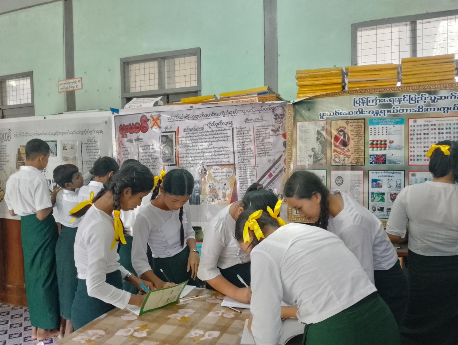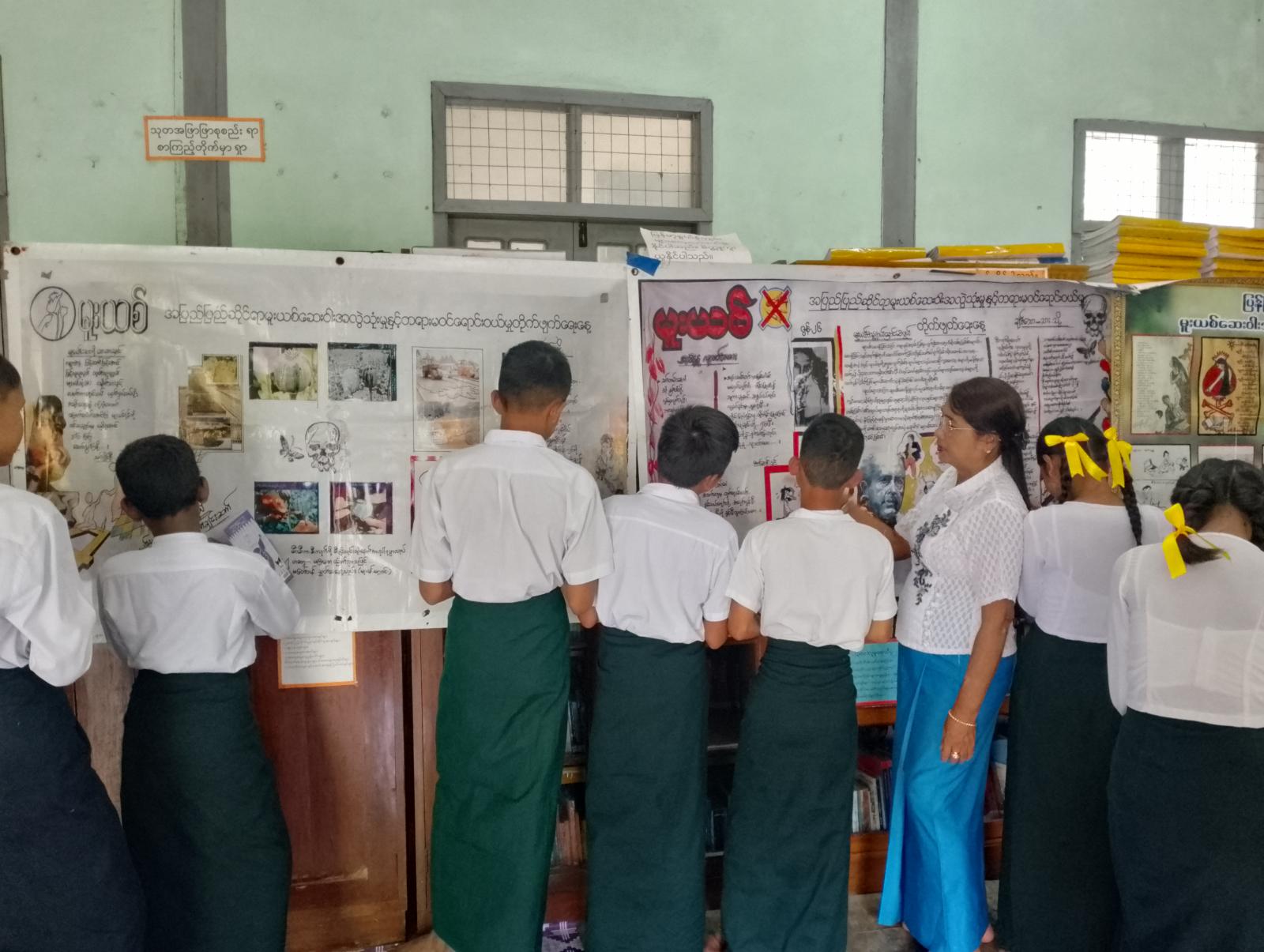 ဦးစွာ ပြန်ကြားရေးနှင့်ပြည်သူ့ဆက်ဆံရေးဦးစီးဌာနမှ ဦးစီးအရာရှိ ဒေါ်ချိုမြတ်မြတ်ထွေးက အပြည်ပြည်ဆိုင်ရာ မူးယစ်ဆေးဝါးအလွဲသုံးမှုနှင့် တရားမဝင်ရောင်းဝယ်မှုတိုက်ဖျက်ရေး နေ့အထိမ်းအမှတ်ဟောပြောပွဲ ကျင်းပရခြင်း၏ ရည်ရွယ်ချက်ကို ကြောကြားပြီး မူးယစ်ဆေးဝါး၏ အန္တရာယ်နှင် ဆိုးကျိုးများ၊ ပြစ်မှုပြစ်ဒဏ်များကို ကျောင်းသား၊ ကျောင်းသားများ လေ့လာမှတ်သားနိုင်စေရန် နံရံကပ်စာစောင်ပြခန်းများဖြင့် ခင်းကျင်းပြသထားရာ အ.မ.က မူလွန်ကလိုင်းကနိုင်ကျောင်းမှ ကျောင်းသား၊ ကျောင်းသူများက စိတ်ပါဝင်စားစွာ ကြည့်ရူခဲ့ကြကြောင်း သိရသည်။