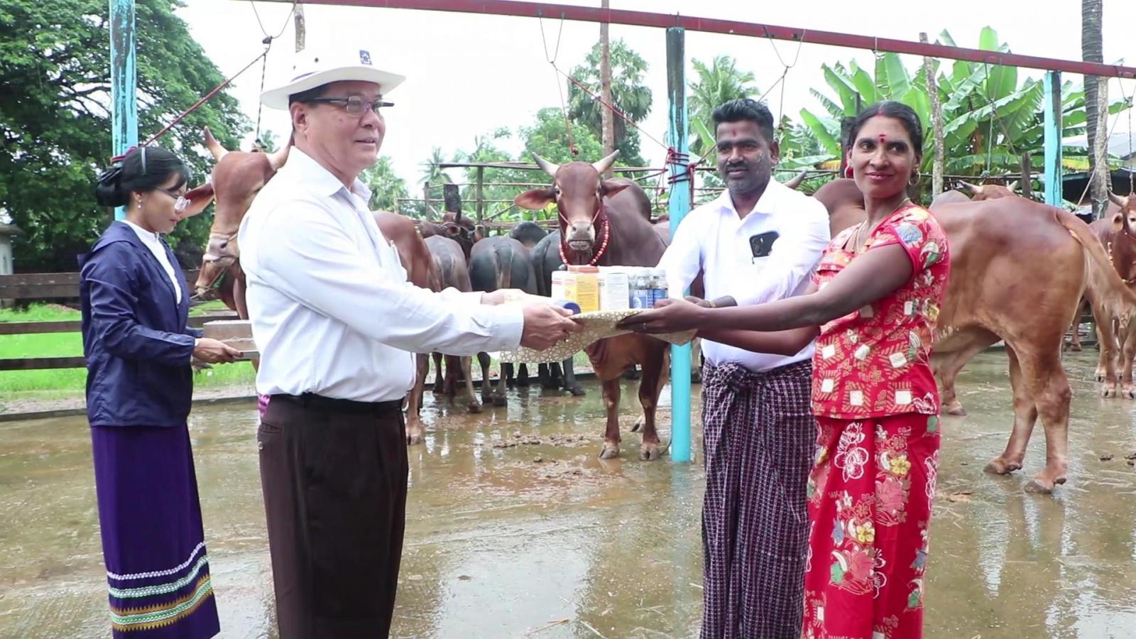 ဆက်လက်၍ ပြည်နယ်ဝန်ကြီးချုပ်နှင့်အဖွဲ့သည် ဝင်းကျန်ကျေးရွာအုပ်စု၌ ဒေသနွား ၅၅ ကောင်မွေးမြူ၍ သားစပ်မျိုးဖြန့်ခြင်းနှင့် အသားနှင့်နို့ထုတ်လုပ်ဖြန့်ဖြူးရောင်းချနေသည့် တောင်သူဦးအောင်ကျော်မြင့်၏ စံပြနွားမွေးမြူရေးခြံအား သွားရောက်ကြည့်ရှုအားပေးရာ မွေးမြူရေးနှင့်ကုသရေးဦးစီးဌာန ညွှန်ကြားရေးမှူးဒေါက်တာ တင်နွယ်ရီက တောင်သူမွေးမြူထားရှိမှုအခြေအနေများကို ရှင်းလင်းတင်ပြပြီး ပြည်နယ်ဝန်ကြီးချုပ်က လိုအပ်သည် များမှာကြားကာ မွေးမြူရေးနှင့်ကုသရေးဦးစီးဌာနမှ အခမဲ့ချီးမြှင့်သည့် တိရစ္ဆာန်သုံးဆေးဝါးများနှင့် အာဟာရဆားခဲများကို ပေးအပ်ချီးမြှင့်သည်။