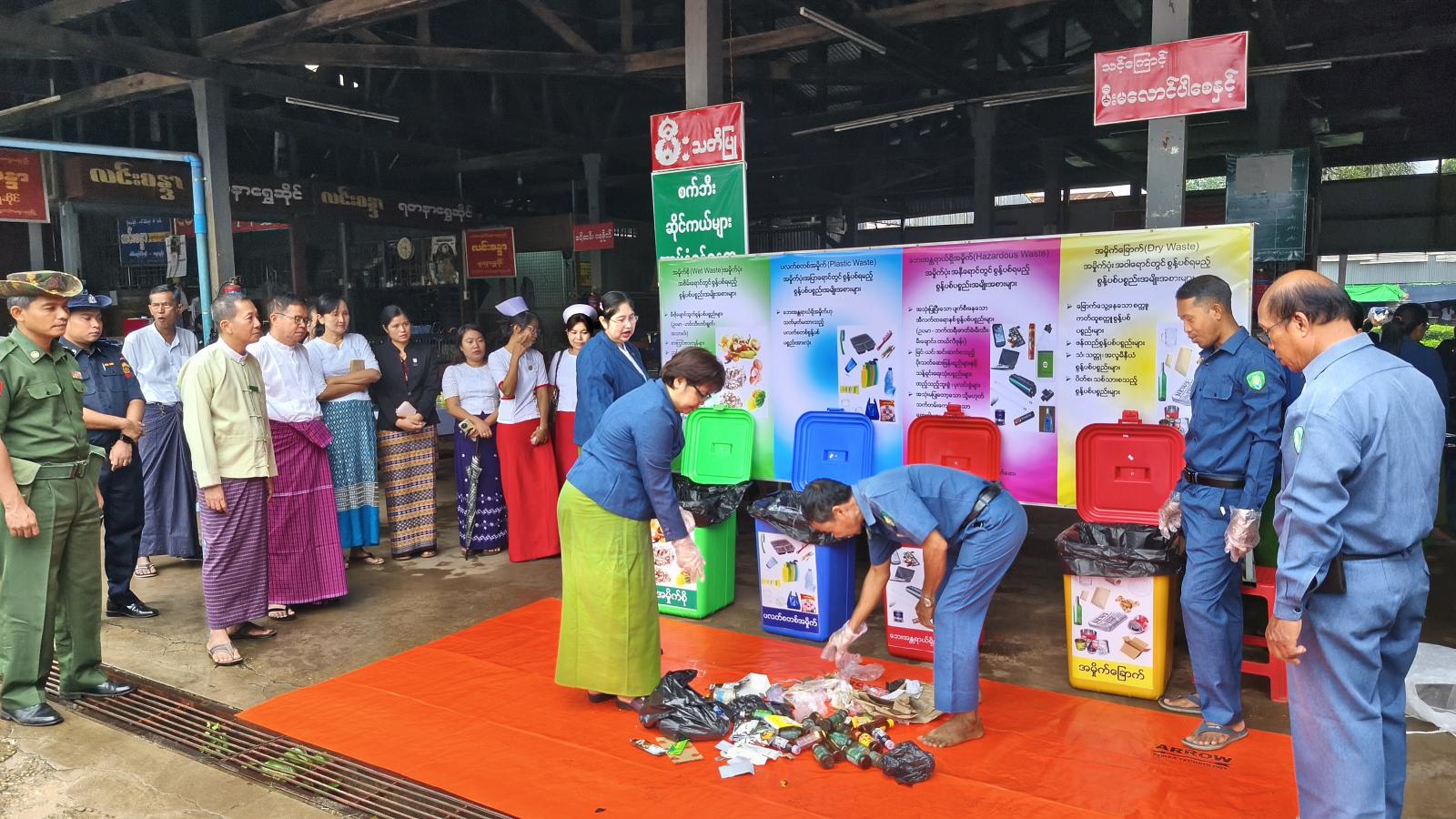 မွန်ပြည်နယ်၊ မုဒုံမြို့နယ်တွင် သဘာဝပတ်ဝန်ကျင်ညစ်ညမ်းမှုကို လျော့ချနိုင်ရေးနှင့် အမှိုက်များစနစ်တကျစွန့်ပစ်နိုင်ရေးအတွက် အမှိုက်များအား အမျိုးအစားအလိုက် ခွဲခြားစွန့်ပစ်နိုင်ရေး အသိပညာပေးဟောပြောခြင်းနှင့် လက်တွေ့သရုပ်ပြသခြင်းကို ယနေ့နံနက် ၉ နာရီက ရွှေဟင်္သာစျေးကြီး၌ ပြုလုပ်ခဲ့ကြောင်း သိရသည်။
