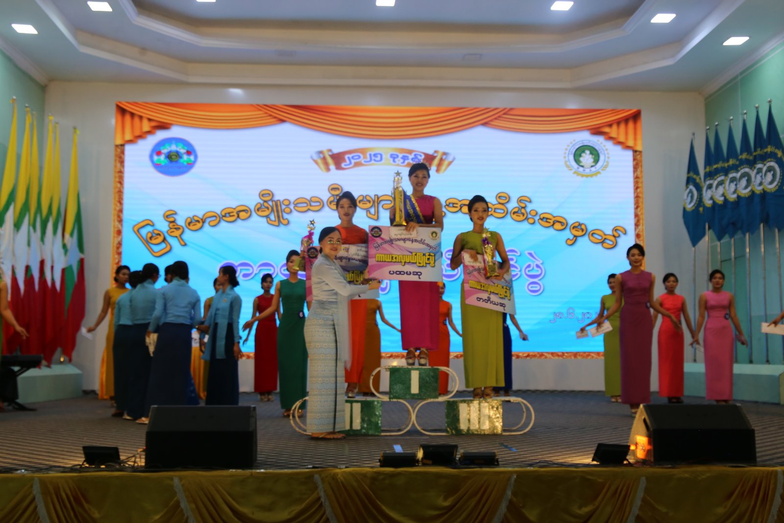 ယင်းနောက် ၂၀၂၅ ခုနှစ်၊ မြန်မာအမျိုးသမီးများနေ့ အထိမ်းအမှတ်ကိုယ်ကာယကြံ့ခိုင်မှု ကာယအလှမယ်ပြိုင်ပွဲအား ဝင်ရောက်ယှဉ်ပြိုင်ကြသည့် ကာယအလှမယ်များအား ဆုများပေးအပ်ချီးမြှင့်ရာ ကာယအလှမယ် ပထမ၊ ဒုတိယ၊ တတိယ ဆုရရှိသည့် ကာယအလှမယ်များအား ကရင်ပြည်နယ် အမျိုးသမီးရေးရာအဖွဲ့နာယက ကရင်ပြည်နယ်အစိုးရအဖွဲ့ ပြည်နယ်ဝန်ကြီးချုပ်၏ဇနီး ဒေါ်နန်းဘေဘီမြင့်က ဆုများပေးအပ်ချီးမြှင့်ပြီး နှစ်သိမ့်ဆုရရှိသည့်အလှမယ်များအား ပြည်နယ်တရား လွှတ်တော်တရားသူကြီးချုပ်၏ဇနီး ဒေါ်ကြူကြူသင်း၊ လုံခြုံရေးနှင့်နယ်စပ်ရေးရာဝန်ကြီး၏ဇနီး ဒေါ်ခင်မျိုးသက်၊ လမ်းပန်းဆက်သွယ်ရေးဝန်ကြီး၏ဇနီး ဒေါ်တင်သီတာ၊ သယံဇာတရေးရာဝန်ကြီး၏ ဇနီး ဒေါ်မာယဉ်အေး၊ စီးပွားရေးရာဝန်ကြီး၏ဇနီး ဒေါ်မြင့်မြင့်အေး၊ ကရင်ပြည်နယ် အမျိုးသမီးရေးရာအဖွဲ့အတွင်းရေးမှူး တိုင်းရင်းသားရေးရာဝန်ကြီး၏ဇနီး ဒေါ်ပွင့်ဦးဟန်၊ ကရင်ပြည်နယ် အမျိုးသမီးရေးရာအဖွဲ့ဥက္ကဋ္ဌ ကရင်ပြည်နယ်အစိုးရအဖွဲ့အတွင်းရေးမှူး၏ဇနီး ဒေါ်သီတာအောင်တို့က ဆုများအသီးသီးပေးအပ်ချီးမြင့်ကြပြီး စုပေါင်းမှတ်တမ်းဓာတ်ပုံများ ရိုက်ကူးခဲ့ကြောင်းသိရသည်။